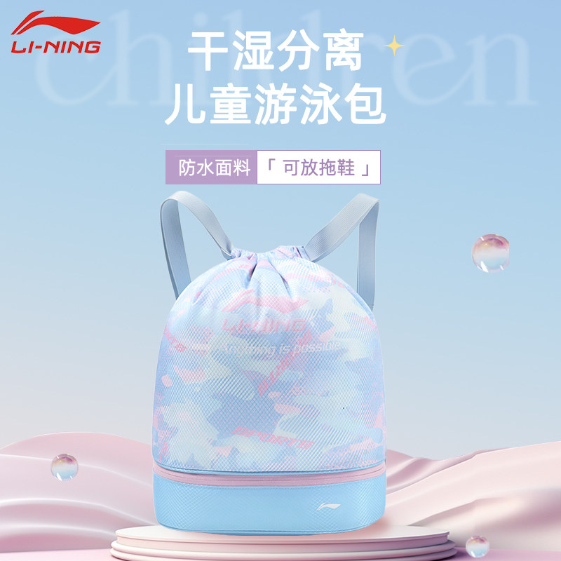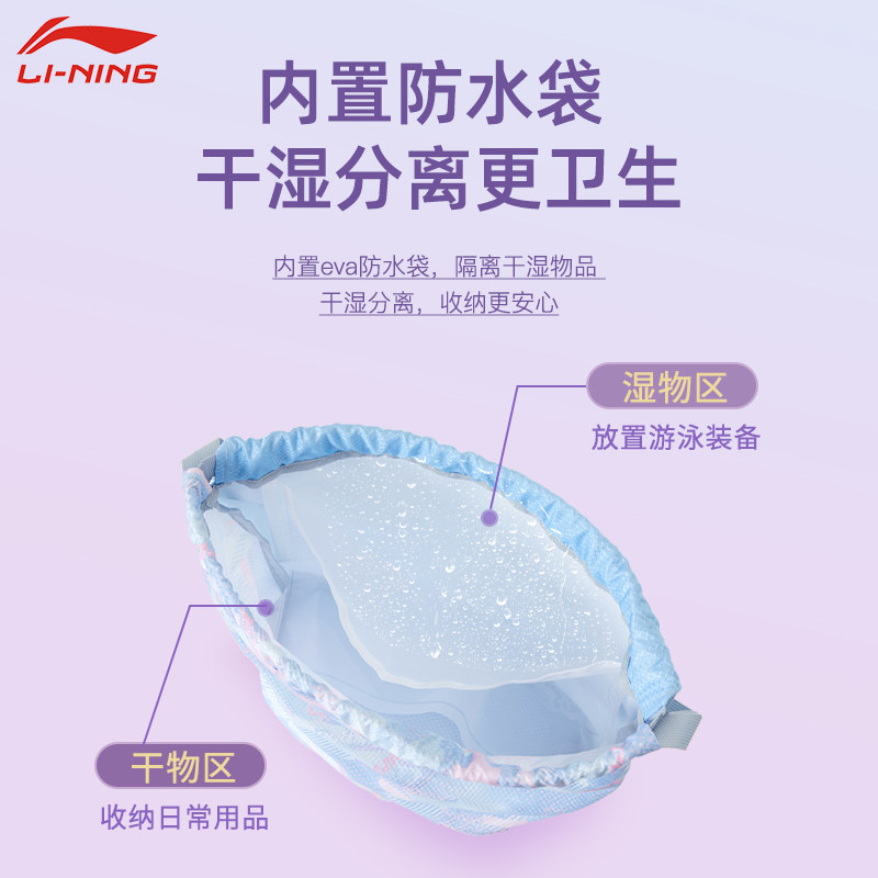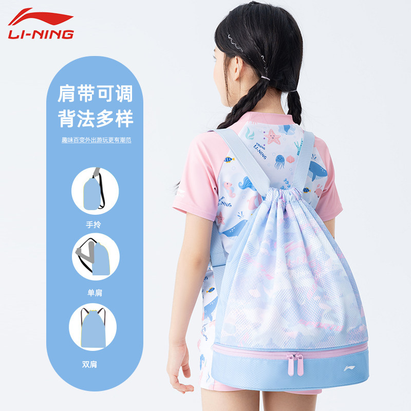 李宁儿童游泳收纳包干湿分离女童便携单肩包学生游泳专用训练装备