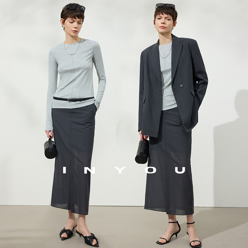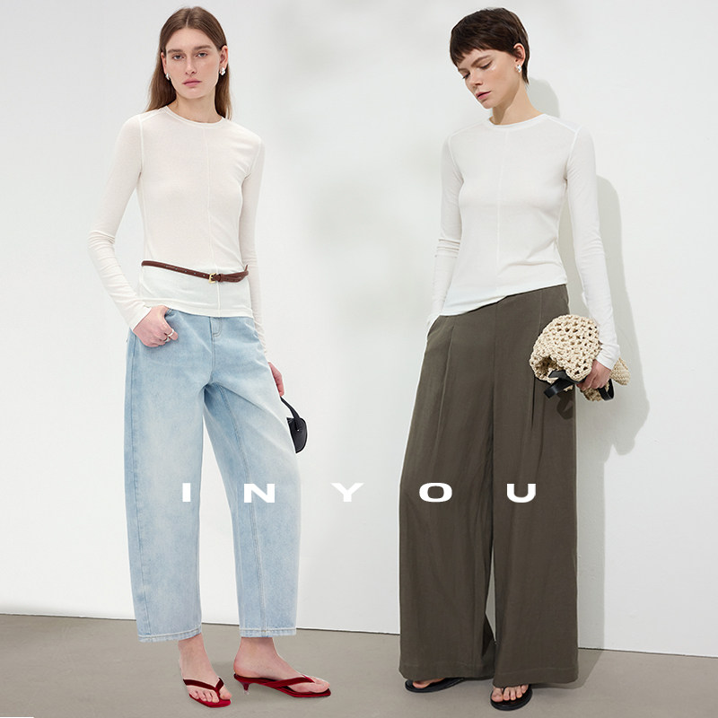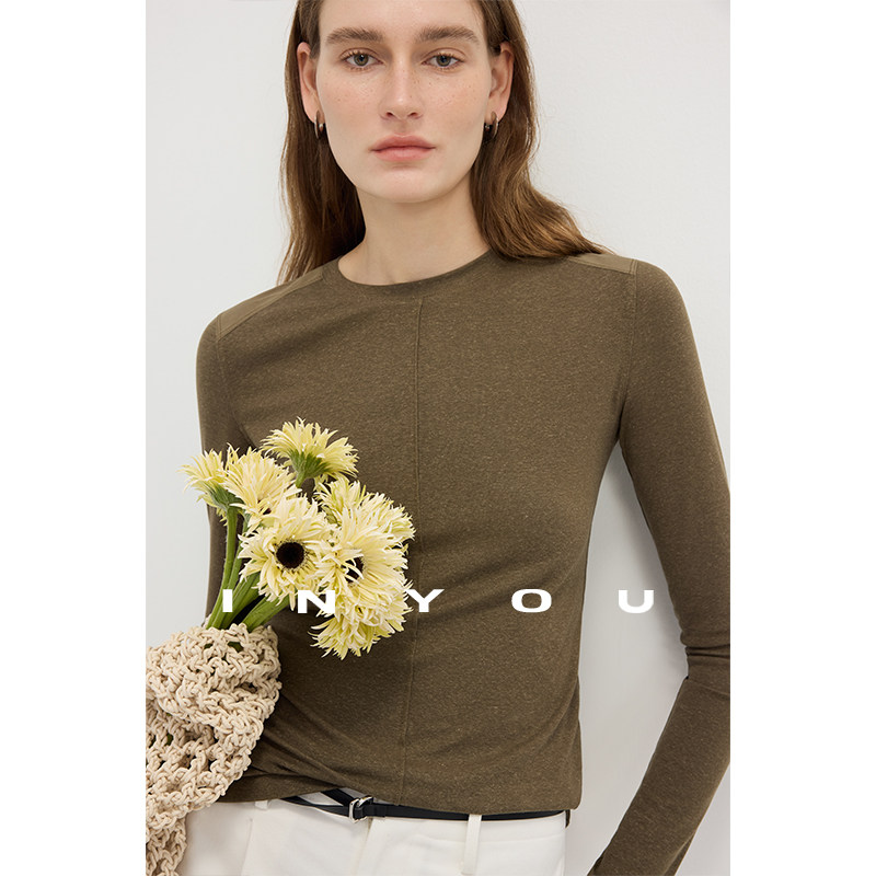 因由 2026早春新款极简轻奢结构拼接打底亚麻针织打底长袖T恤女