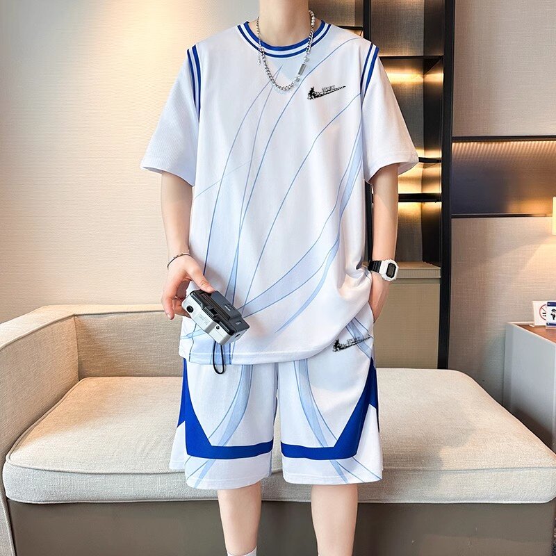 耐克顿运动休闲套装男生夏季薄款透气短袖短裤青少年篮球服套装潮