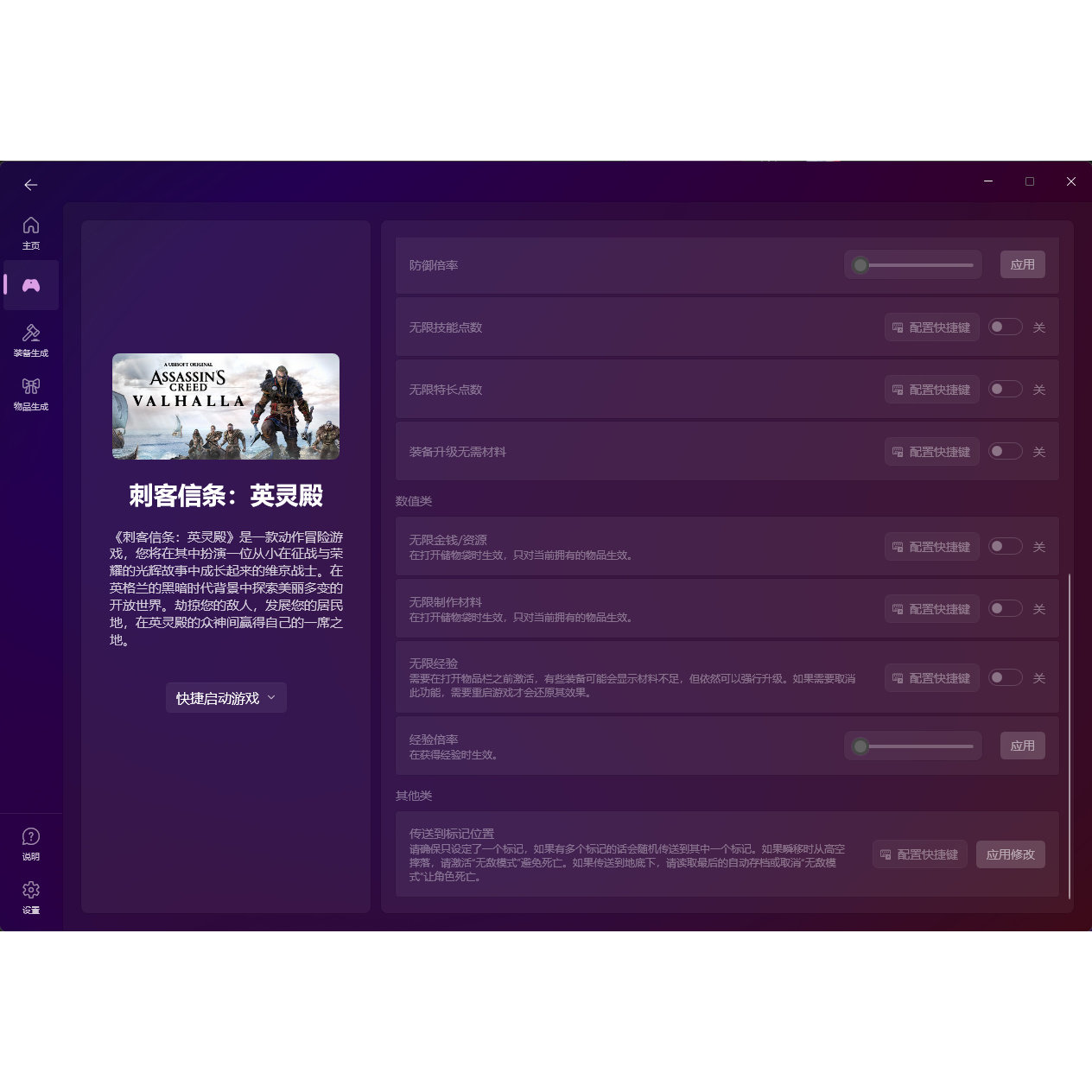 刺客信条英灵殿修改器 商城氪金装备添加无中生有50项基础功能