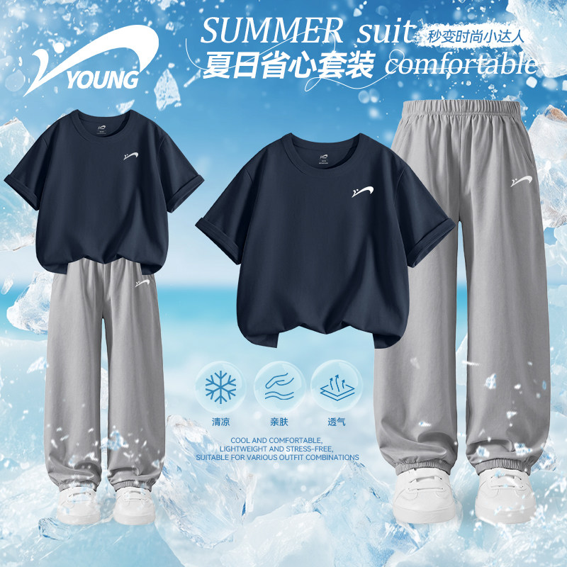 贵人鸟童装男童夏季套装儿童夏款纯棉薄款短袖t恤中大童速干衣服