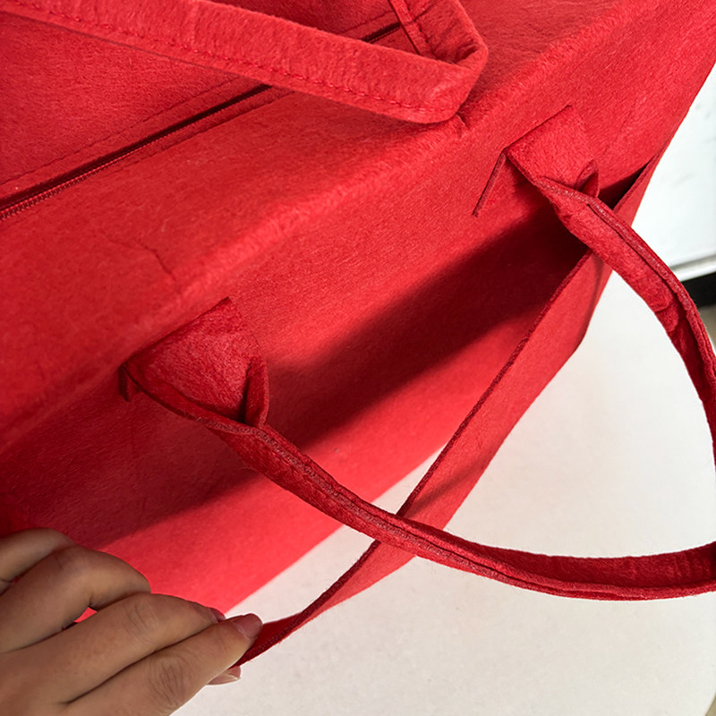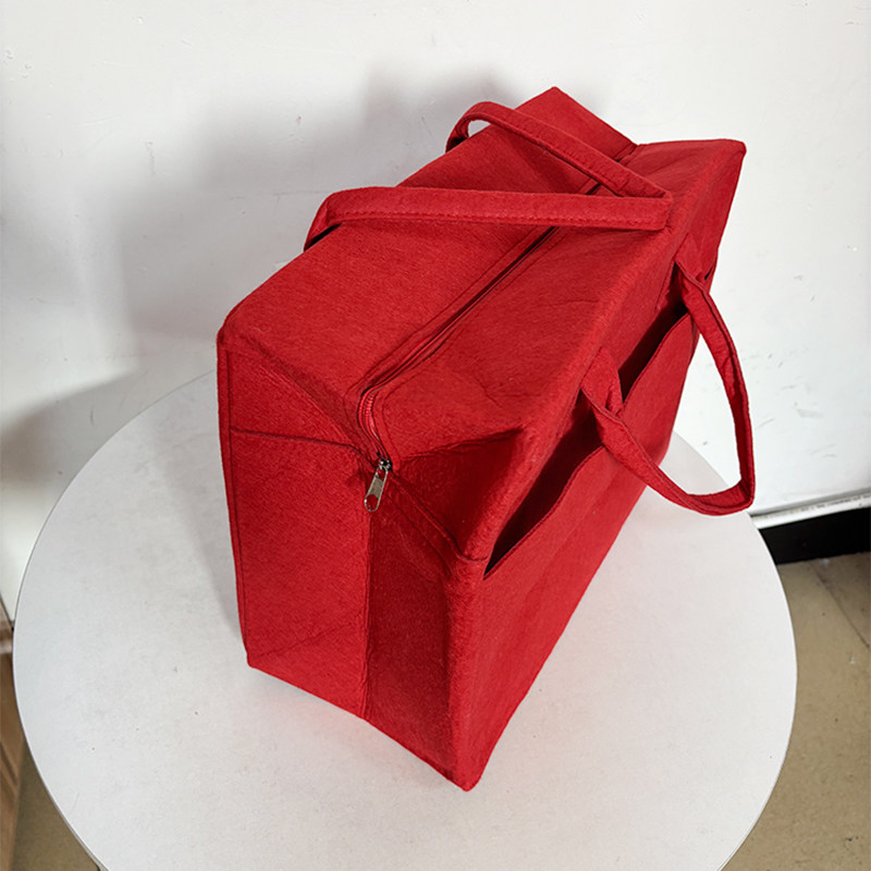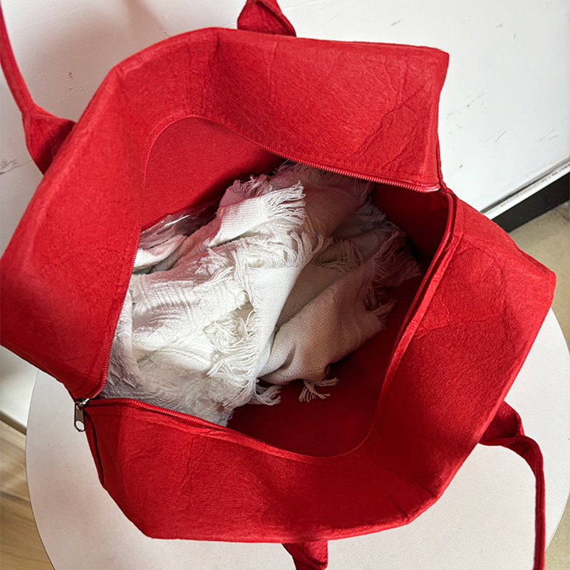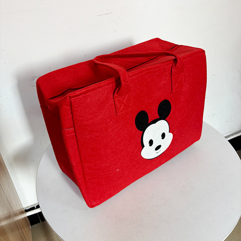 红色毛毡旅行包大容量轻便可挂行李箱手提袋拉链可爱环保收纳包包
