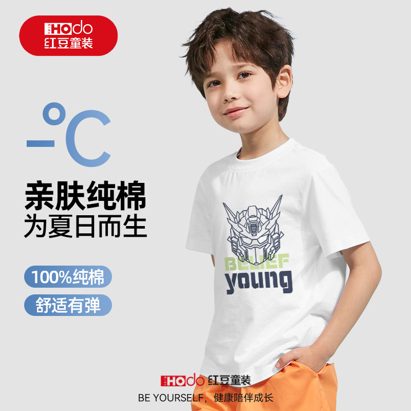 红豆童装男童纯棉短袖t恤儿童夏装2026新款上衣女孩薄运动打底衫
