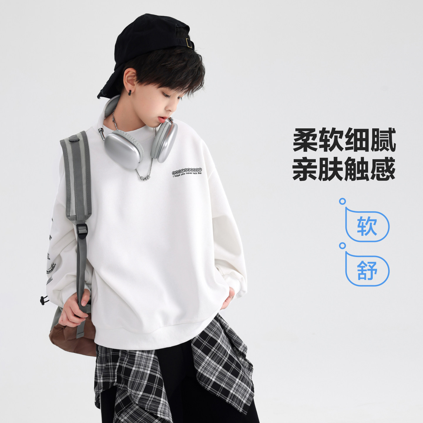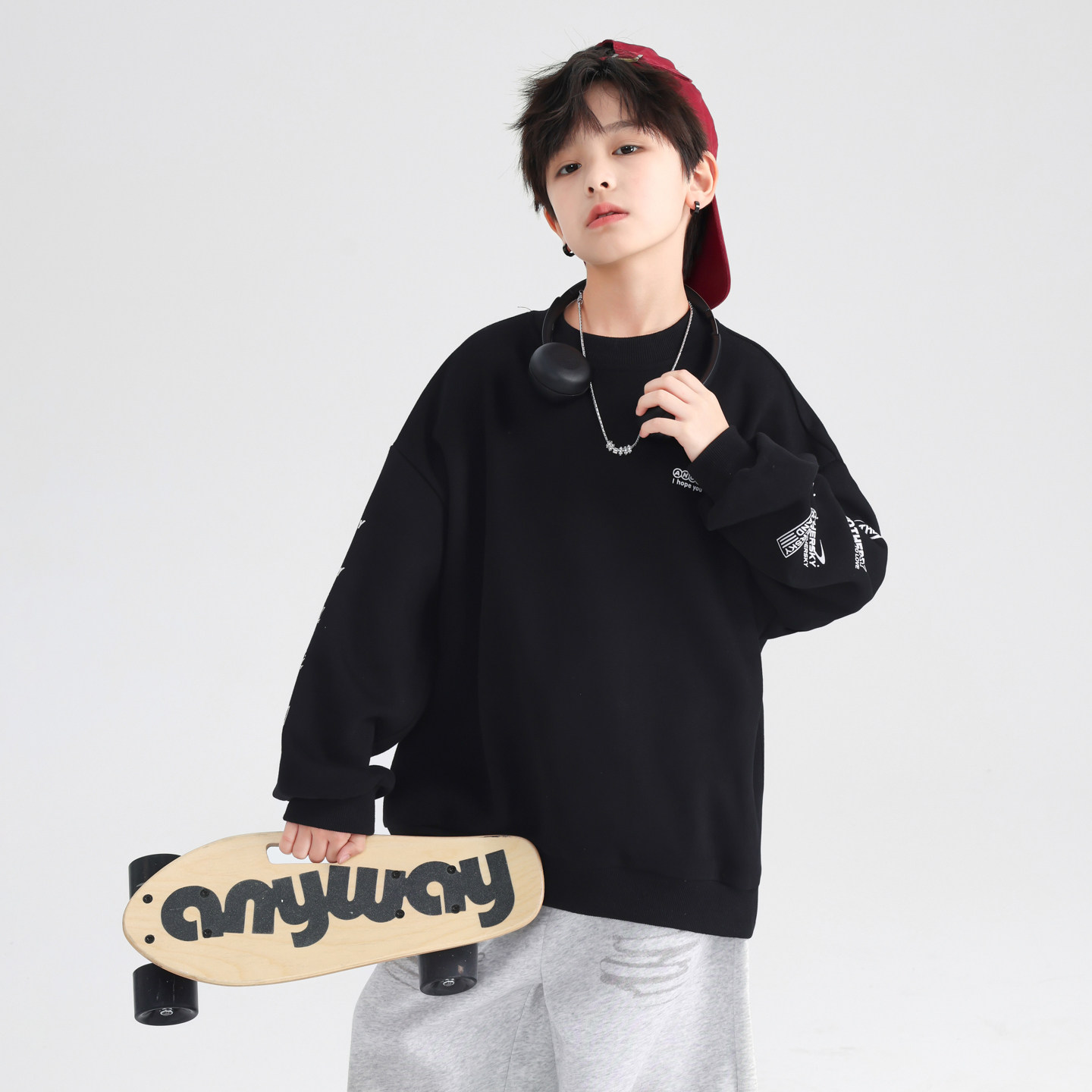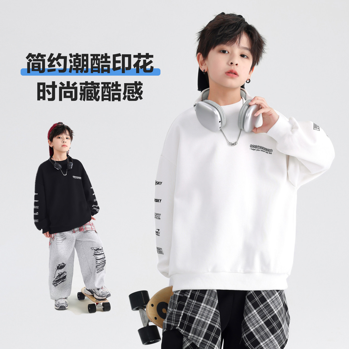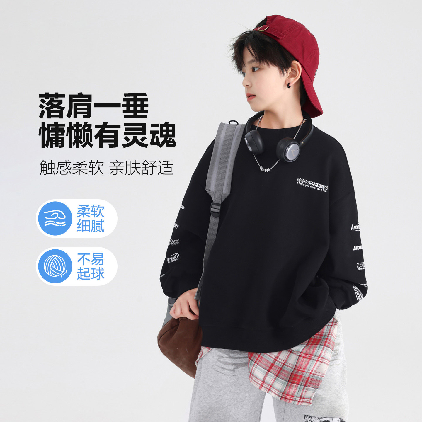 男童春秋潮酷黑色运动圆领卫衣2026新款儿童男孩春装长袖宽松上衣
