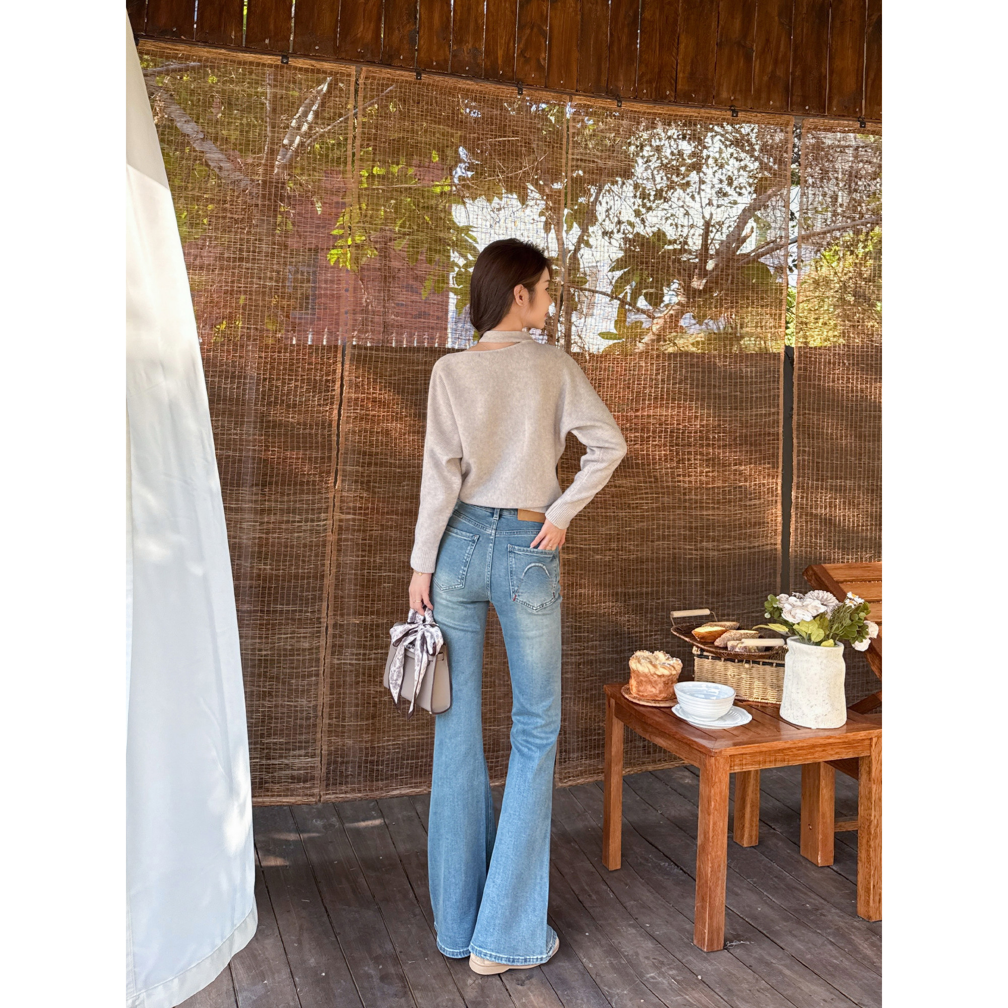 311线报网描述:王家有鱼早春复古蓝时尚百搭微喇牛仔裤女款