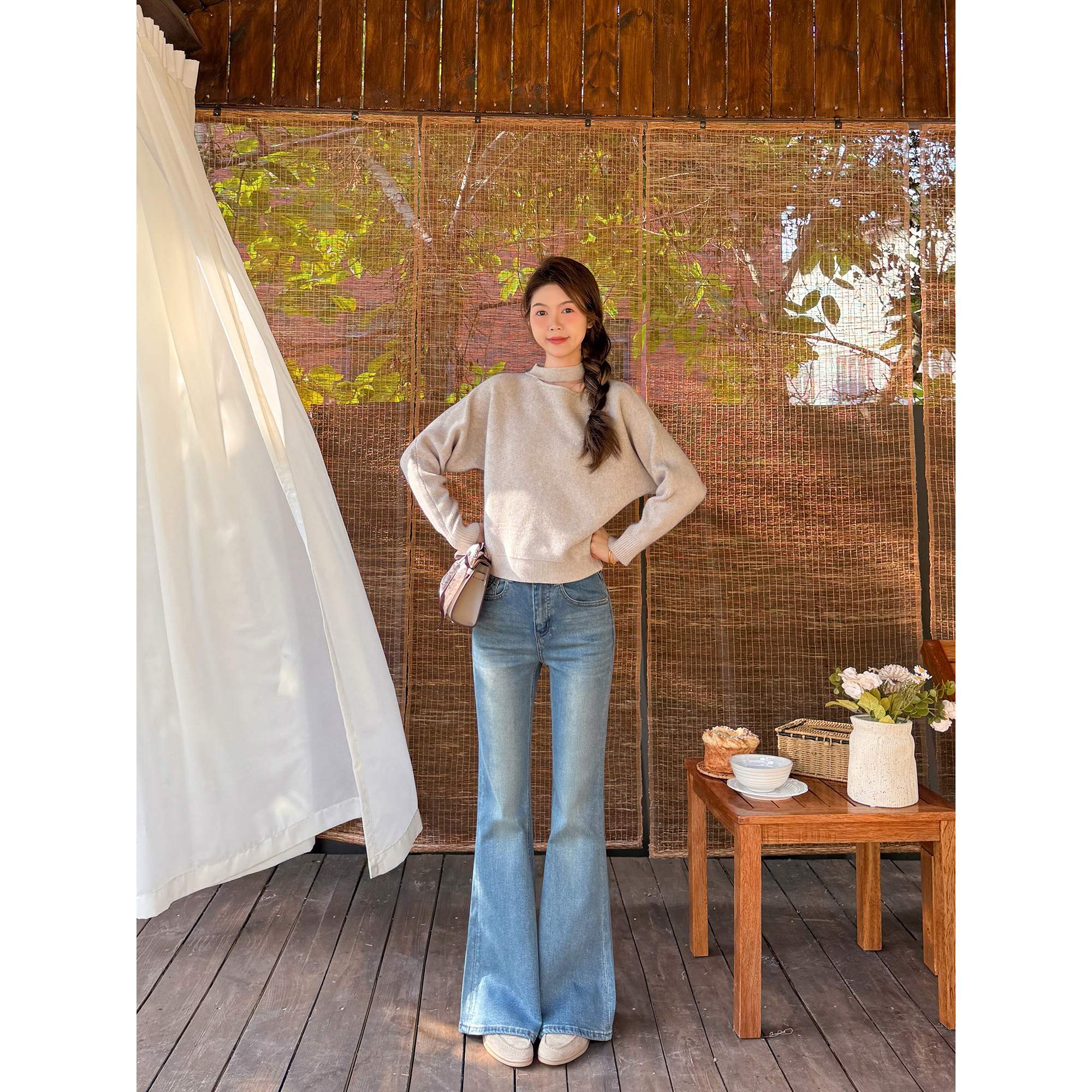 王家有鱼2026年早春新款复古蓝不贴腿微喇裤百搭显瘦牛仔裤子女款