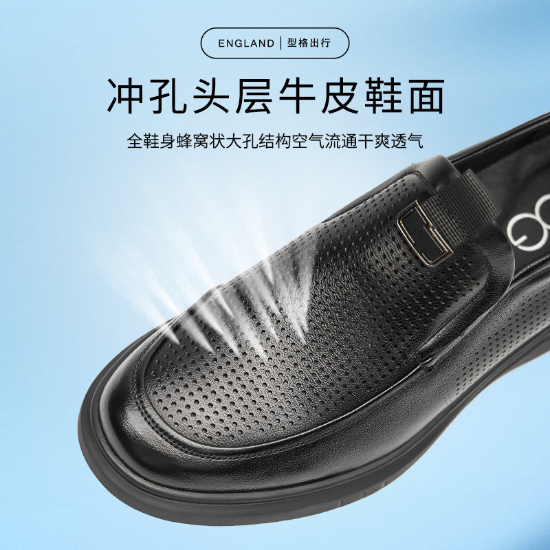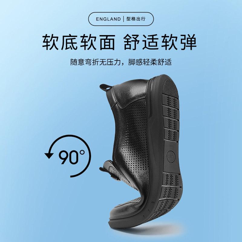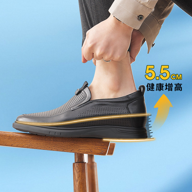 高哥凉鞋增高休闲鞋男款2026新款透气套脚皮鞋男薄款软皮爸爸鞋