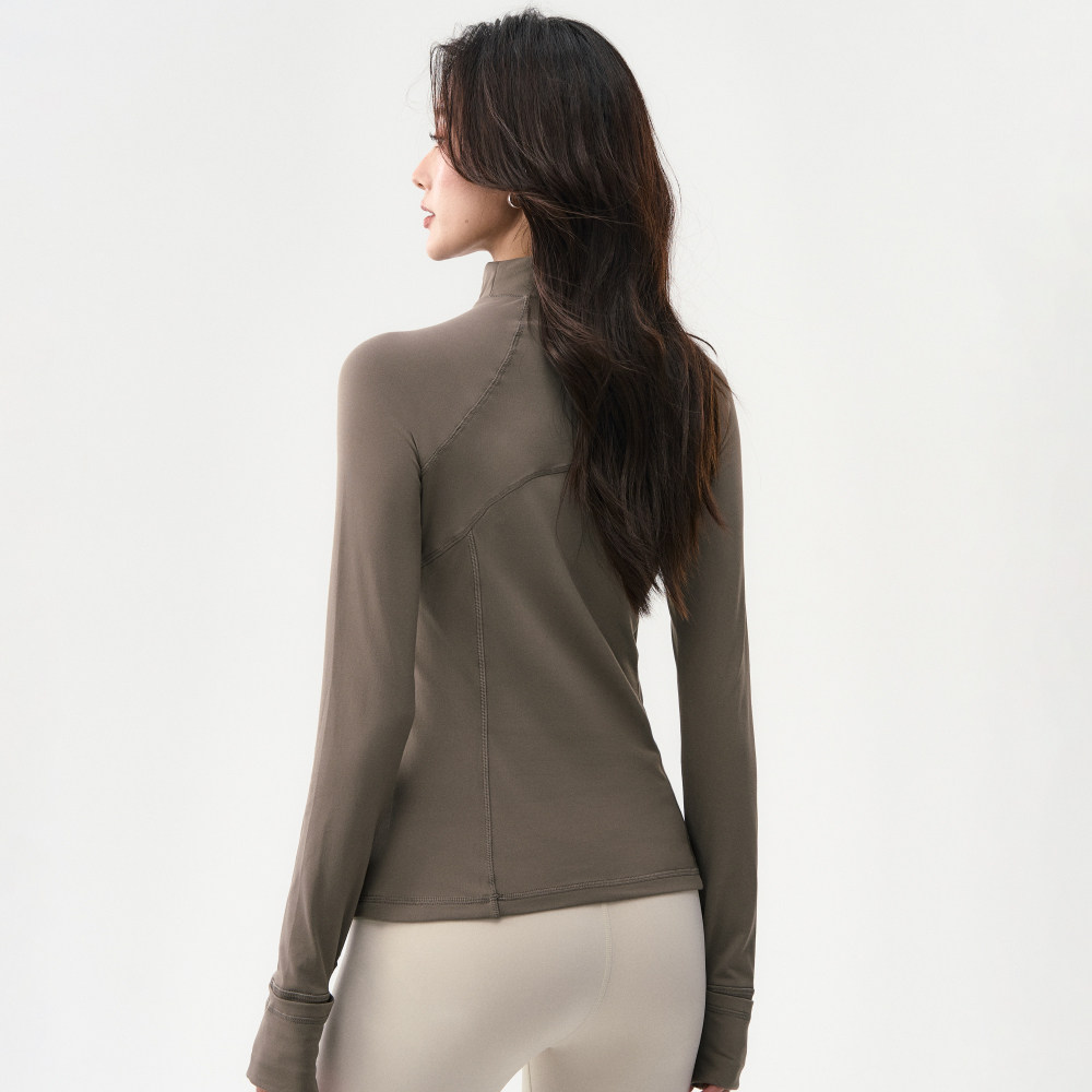 瑜伽上衣女立领半拉链显瘦户外跑步骑行速干运动长袖训练服健身服