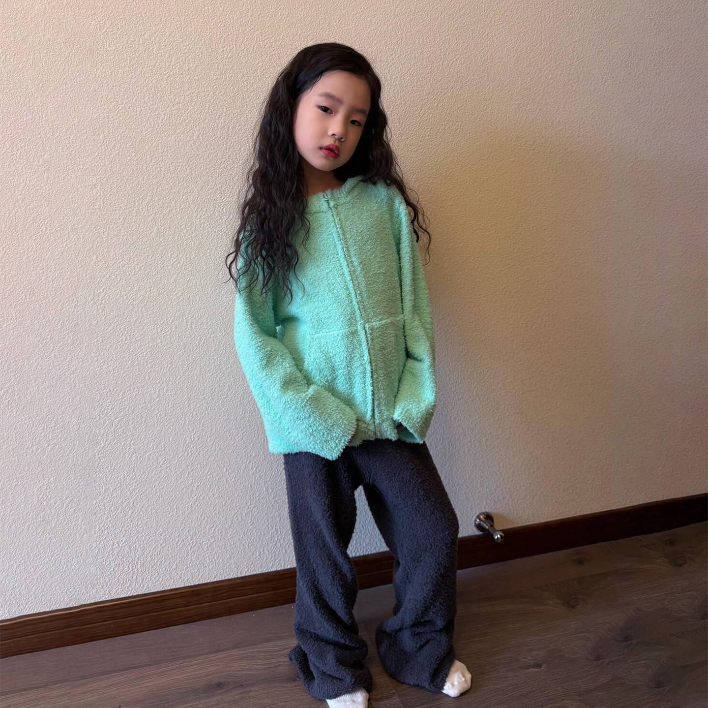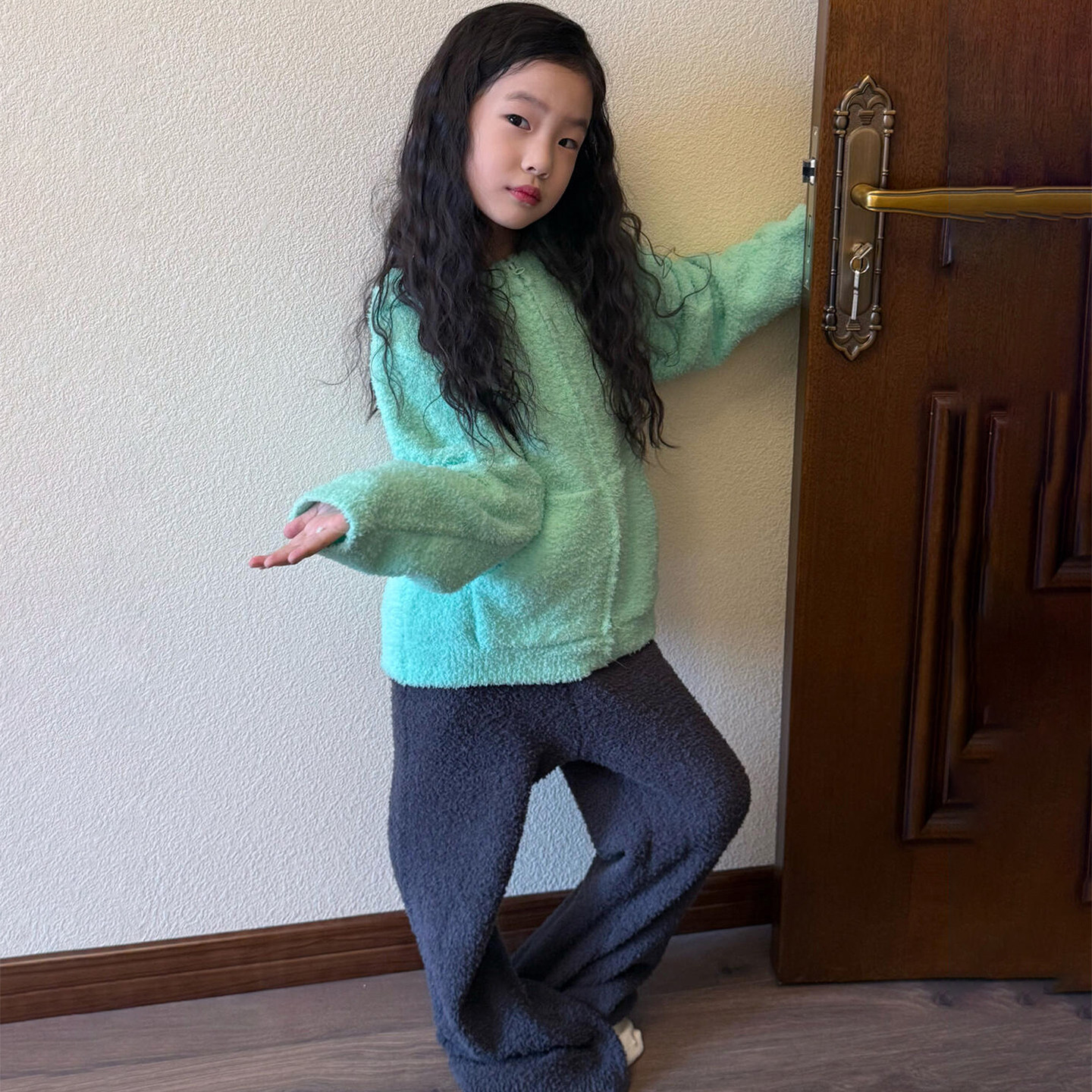 女童毛衣2026春季新款宝宝韩版休闲薄荷绿色儿童拉链针织开衫外套