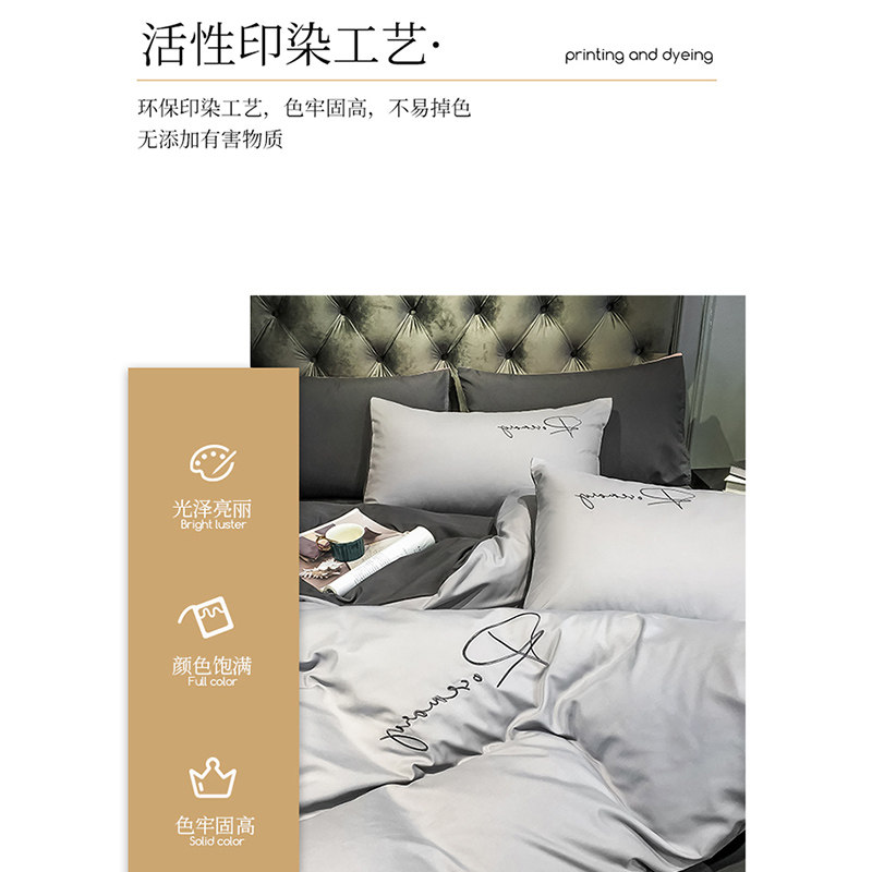 311线报网描述:轻奢风四件套 素色刺绣工艺 水洗棉 超舒适
