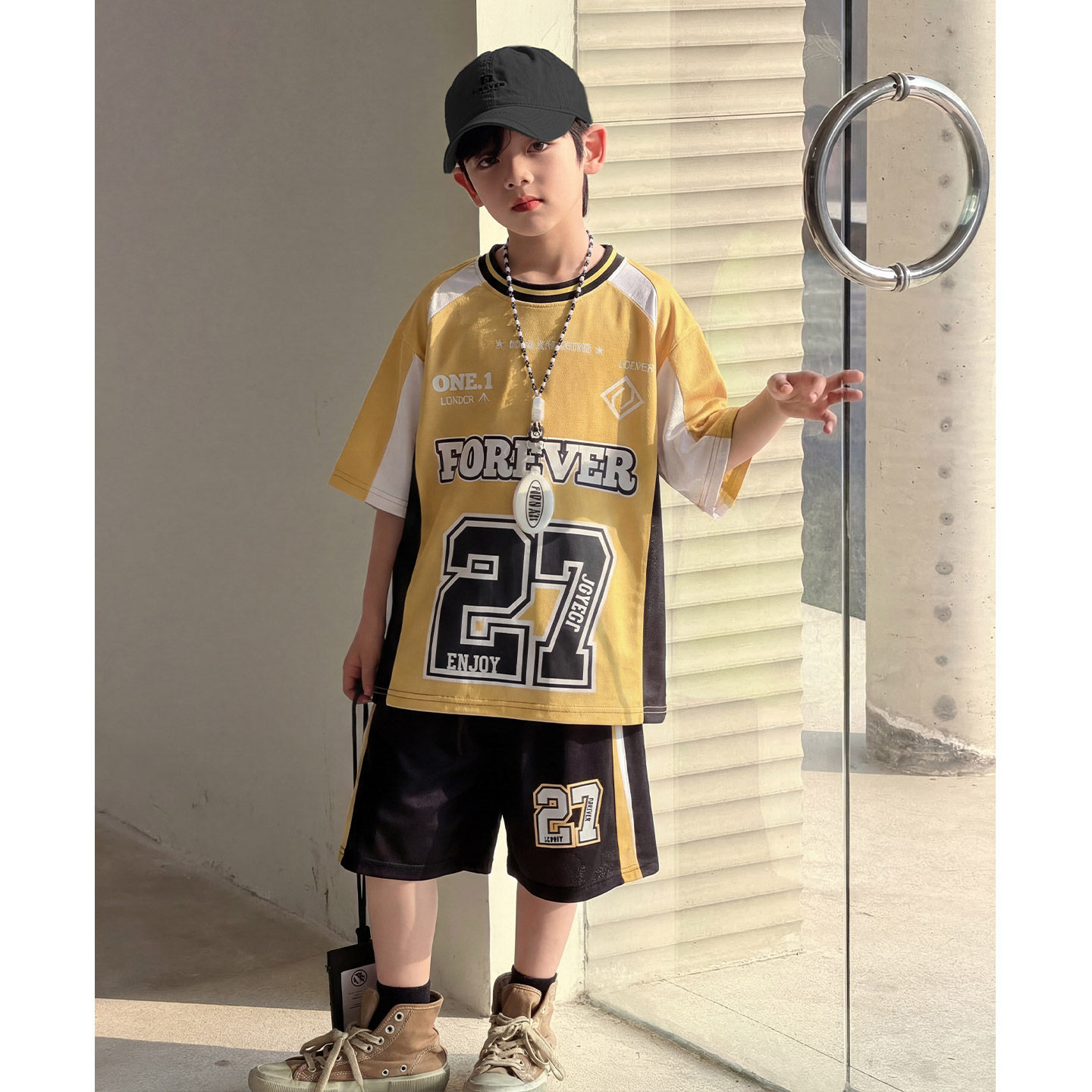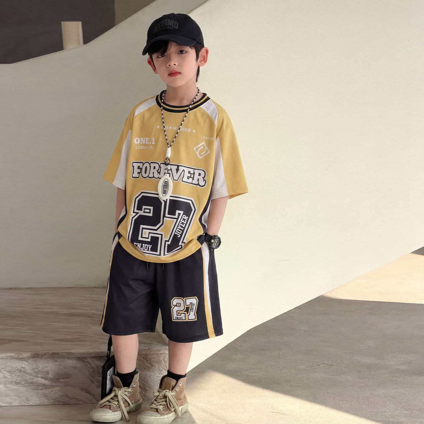男童夏季短袖运动套装2026新款痞帅中大童球服两件套男孩夏装潮酷