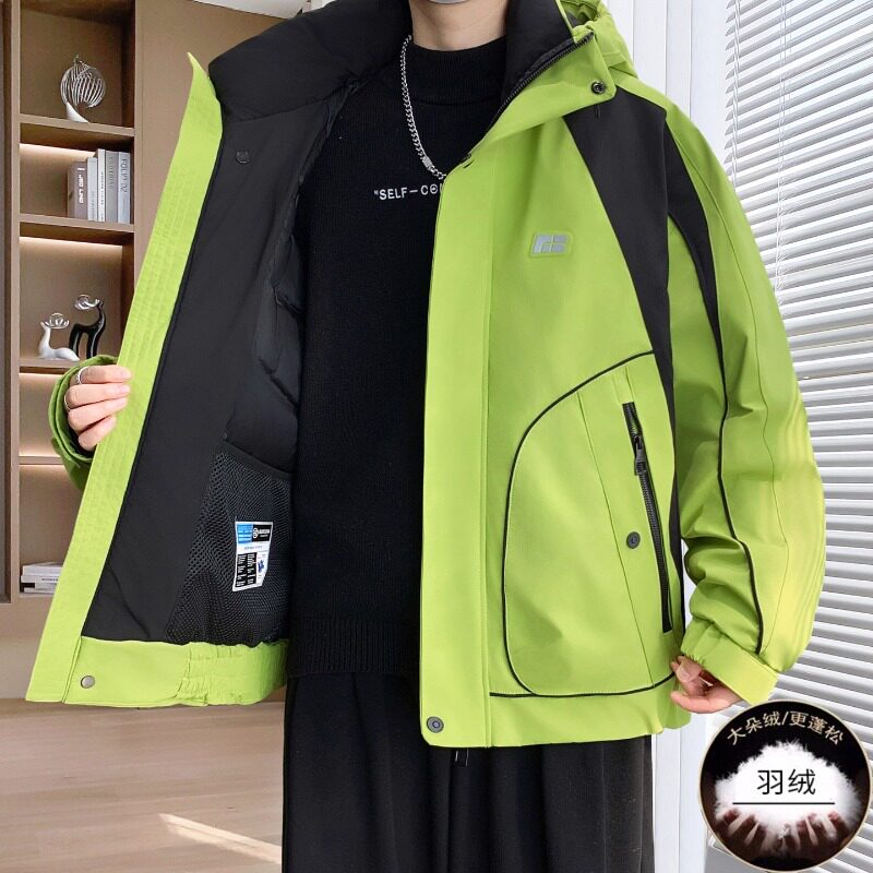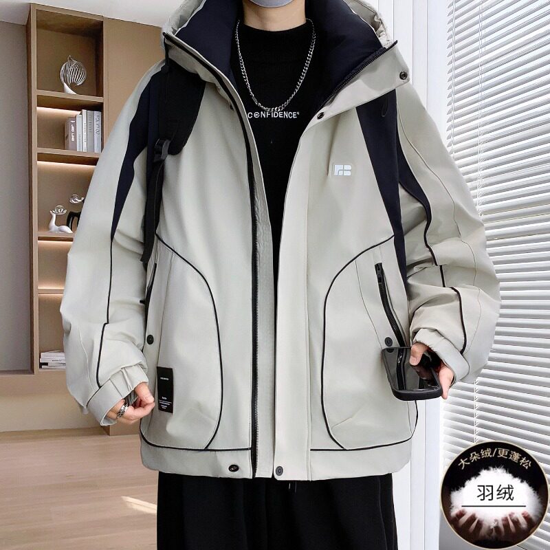 青少年冬季潮牌羽绒服男孩初中高中学生冲锋衣大童白鸭绒加厚外套