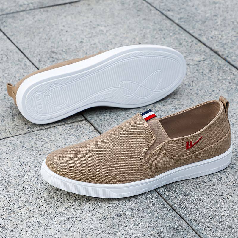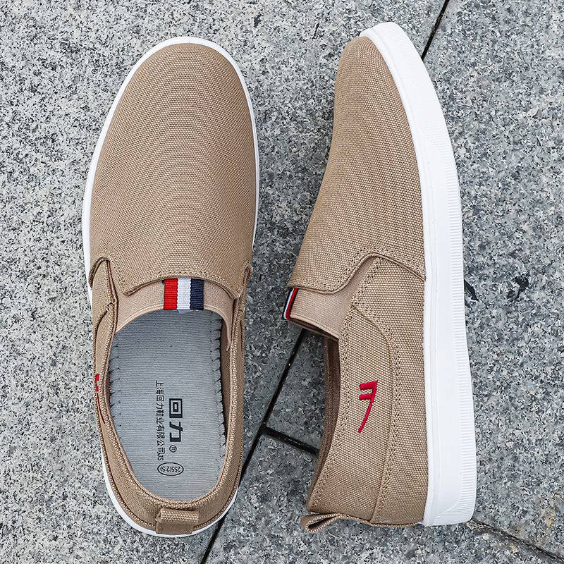 回力平底帆布鞋灰色男鞋 无鞋带男鞋网鞋中老年纯色爸爸休闲鞋子