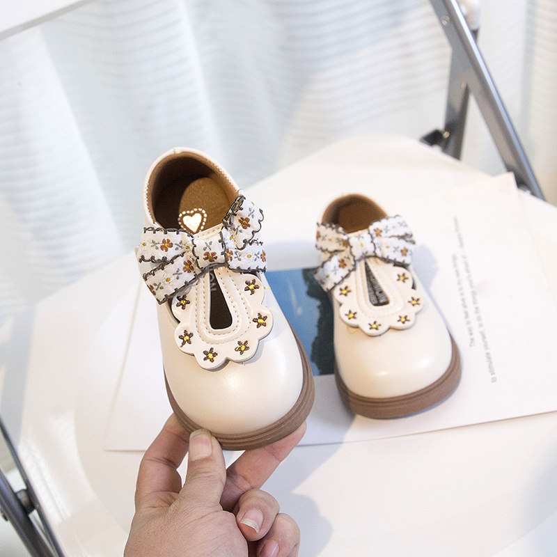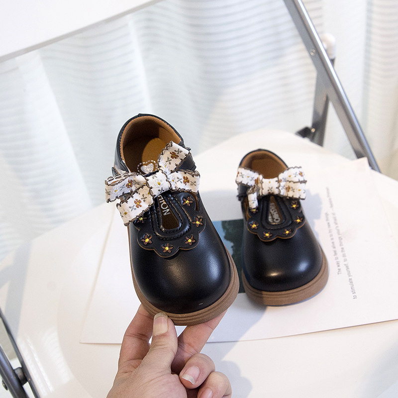 真皮女童小皮鞋刺绣公主风中小童春秋2026新款学步软底儿童豆豆鞋