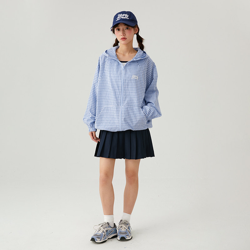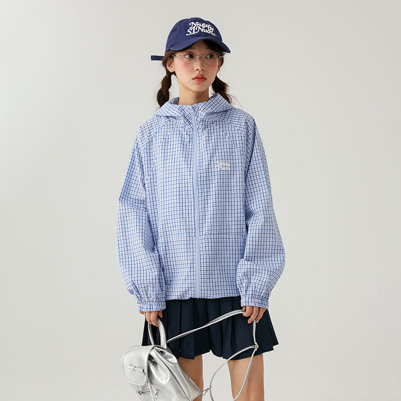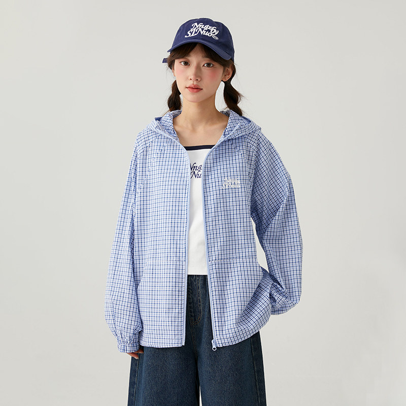 初中生2026春季新款学院风格子外套女青少年休闲连帽长袖外搭开衫