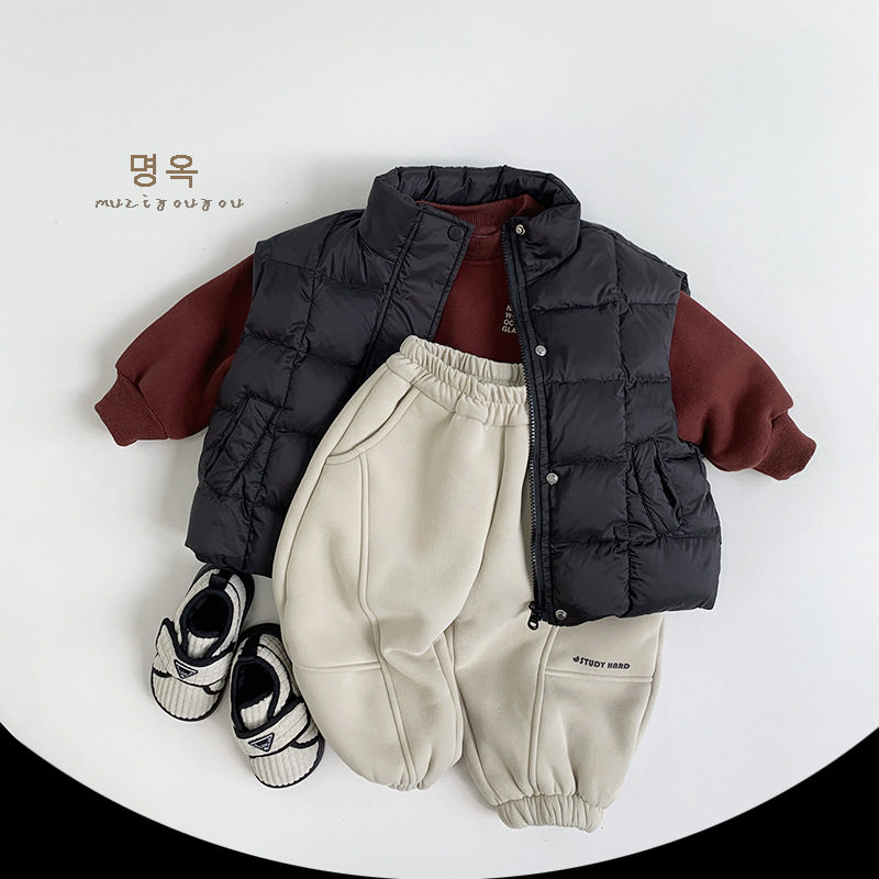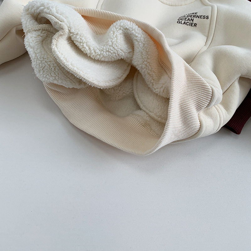 新潮风儿童加绒冬季卫衣加厚男童韩版冬季保暖上衣女童衣服中国红