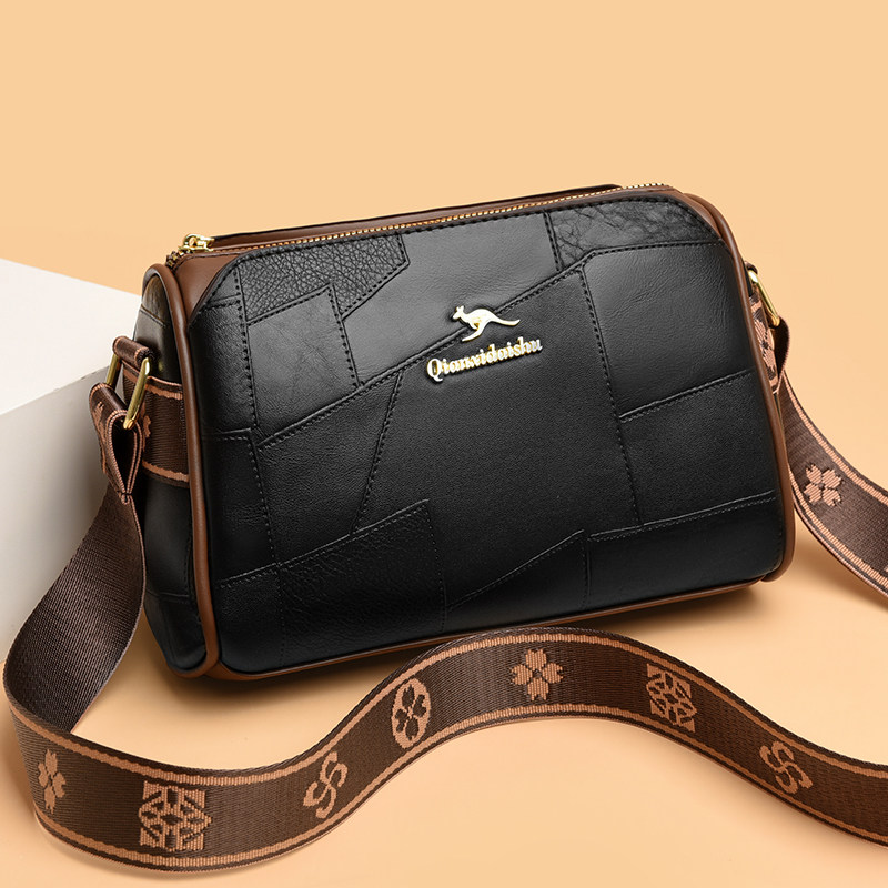 真皮女士枕头包时尚斜挎包宽肩带中年妈妈包软皮单肩包潮