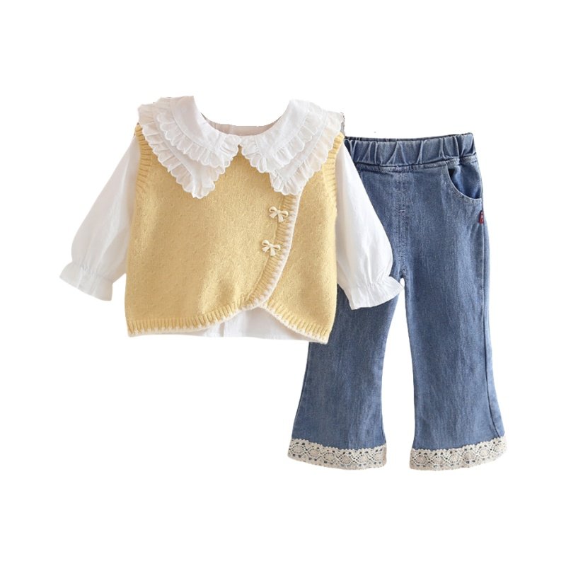 女童洋气时髦毛衣马甲衬衫三件套装宝宝秋装婴儿童春秋潮童装韩版