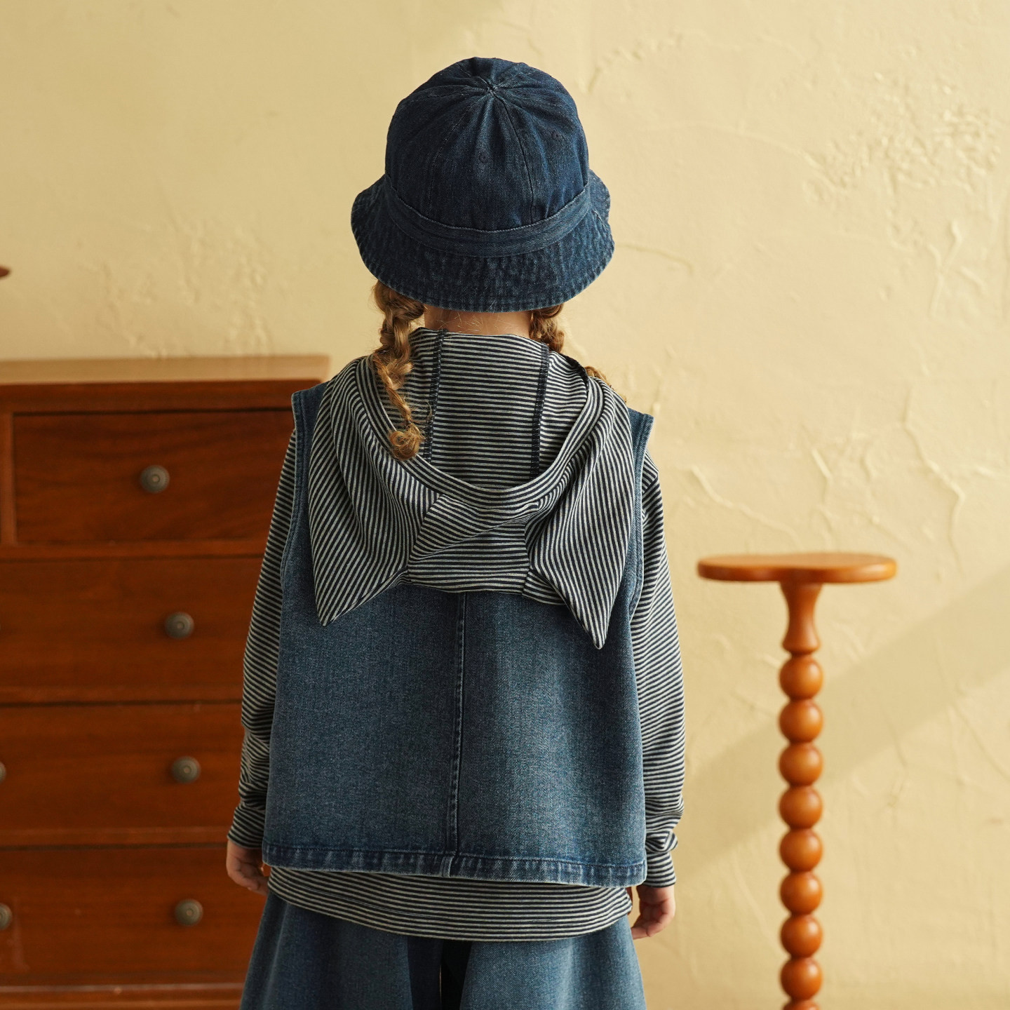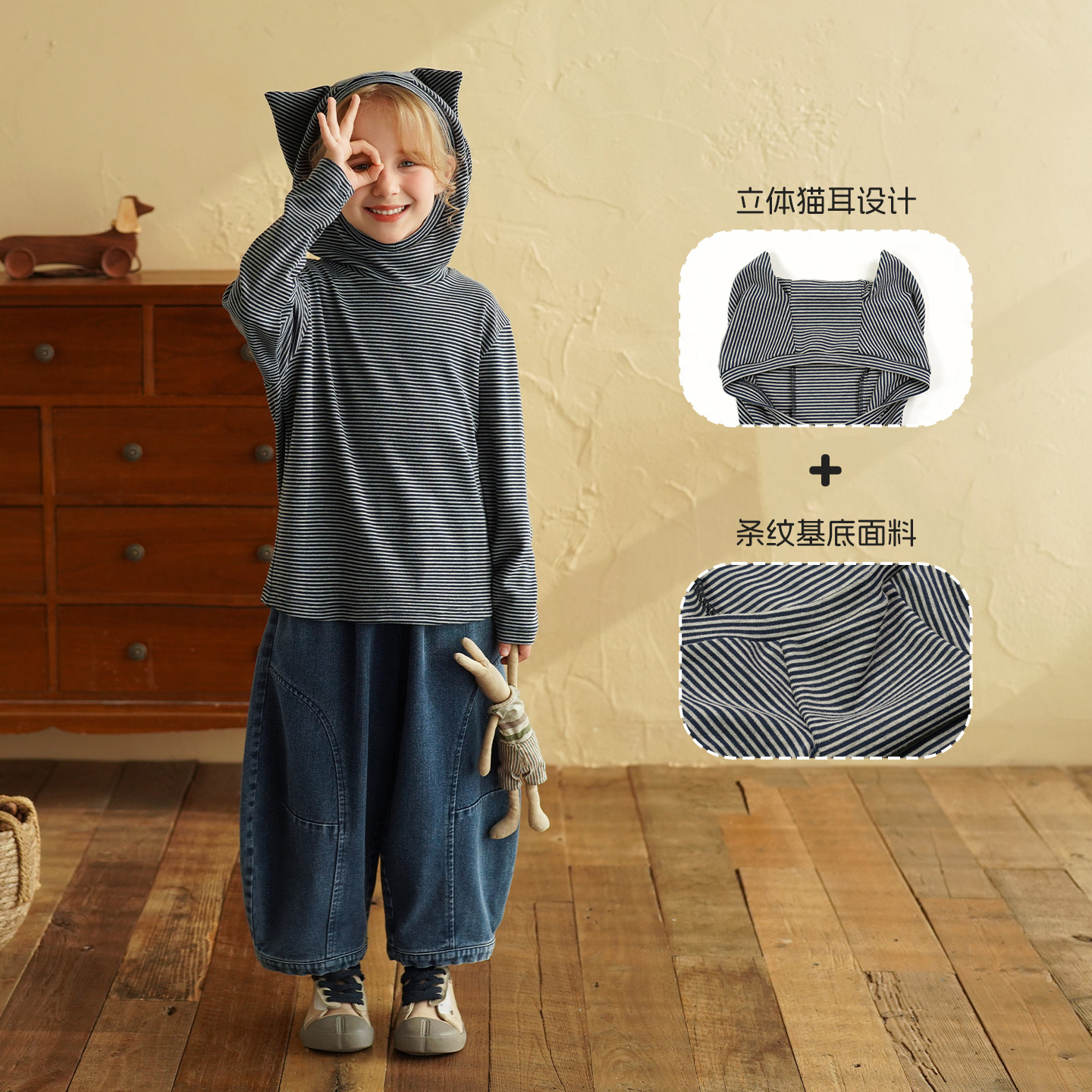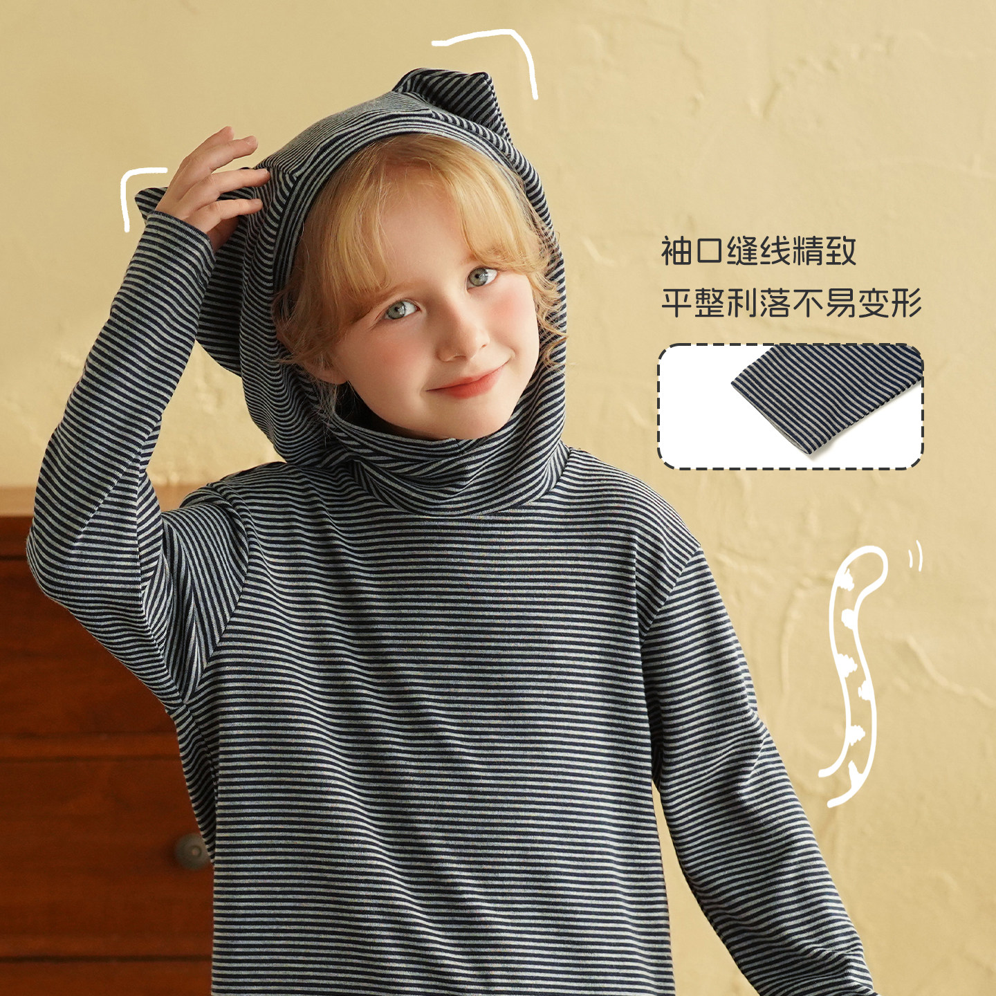 砚台家女童条纹连帽T恤2026春装新款宝宝A类长袖时尚儿童薄款上衣