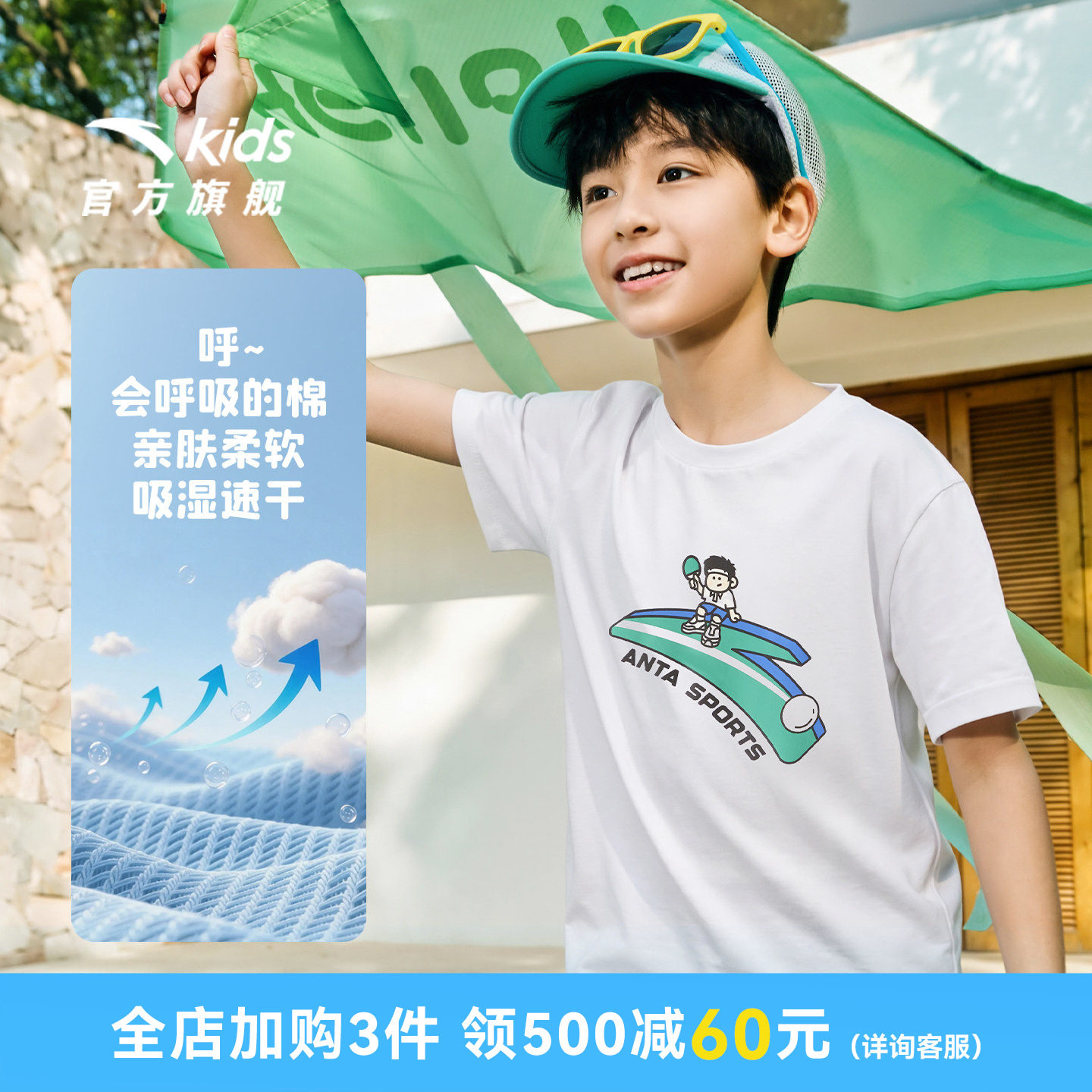 海绵T-安踏儿童男童针织短袖衫2026年夏季新款舒适纯棉亲肤短T恤