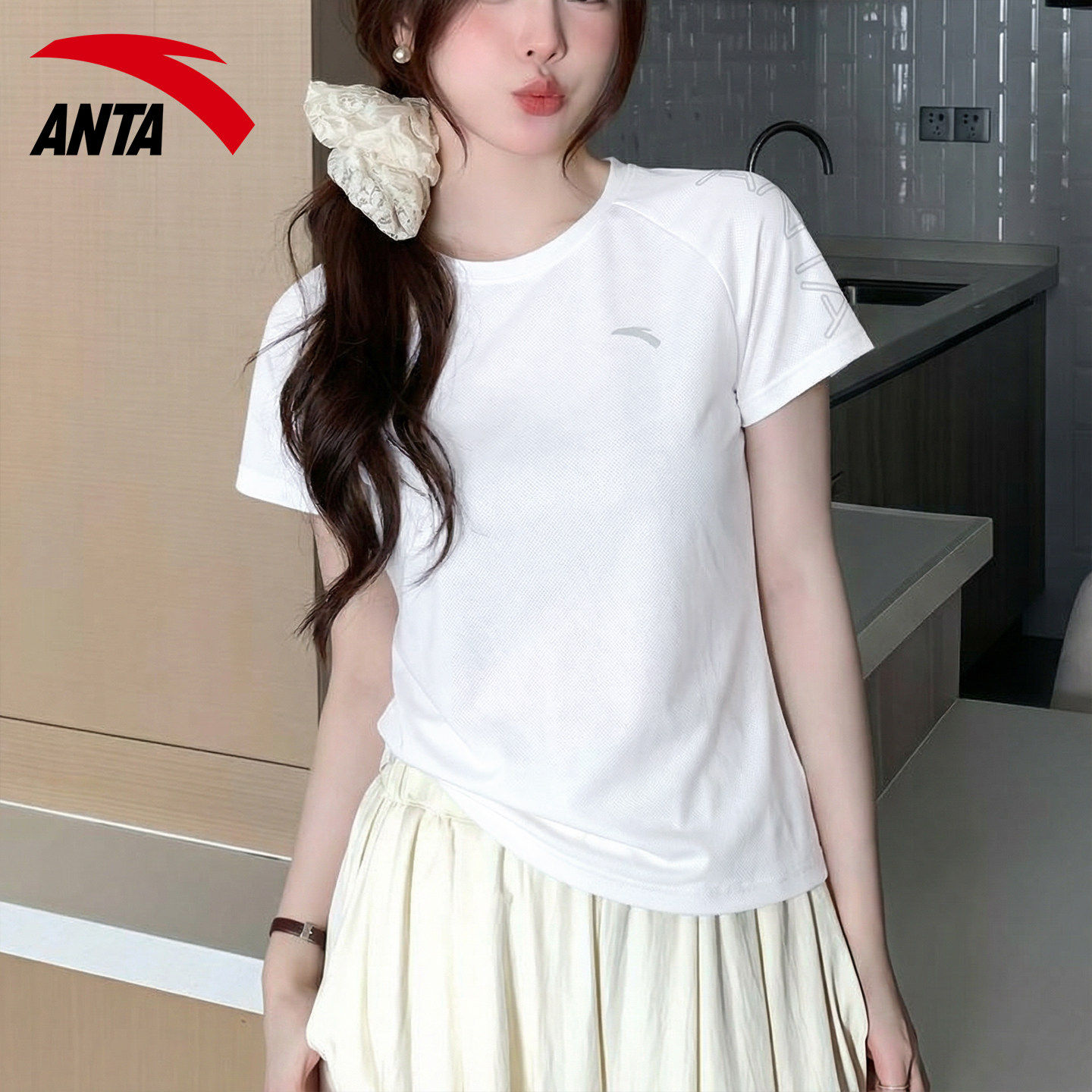 安踏羽毛球服短袖女款2026夏季新款t恤收腰修身显瘦运动健身上衣
