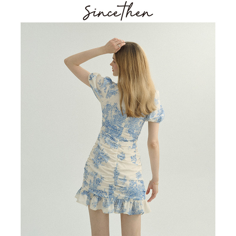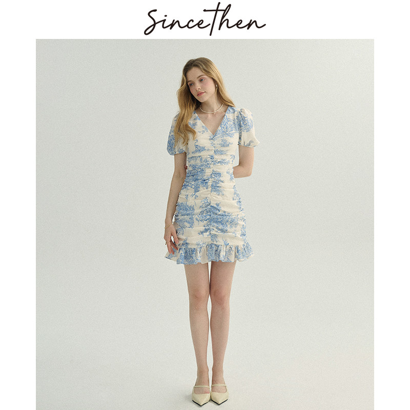 sincethen法式短款碎花裙v领度假裙子小个子短裙仙女连衣裙女夏季