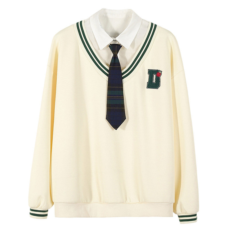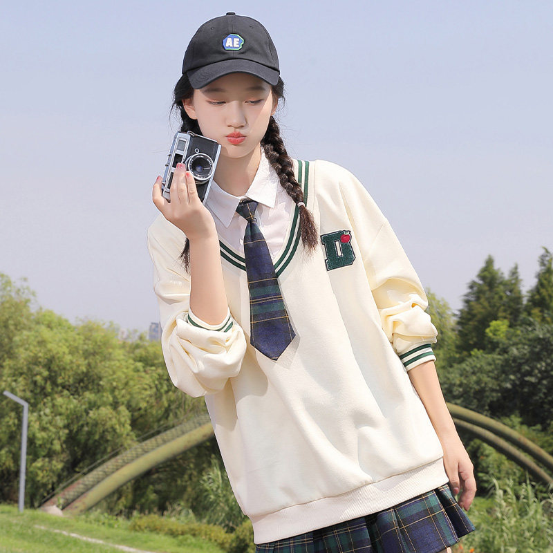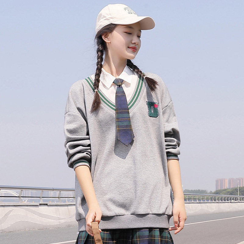 初中女生春装新品卫衣日系JK领假两件长袖外套头衬衫领上衣学生女