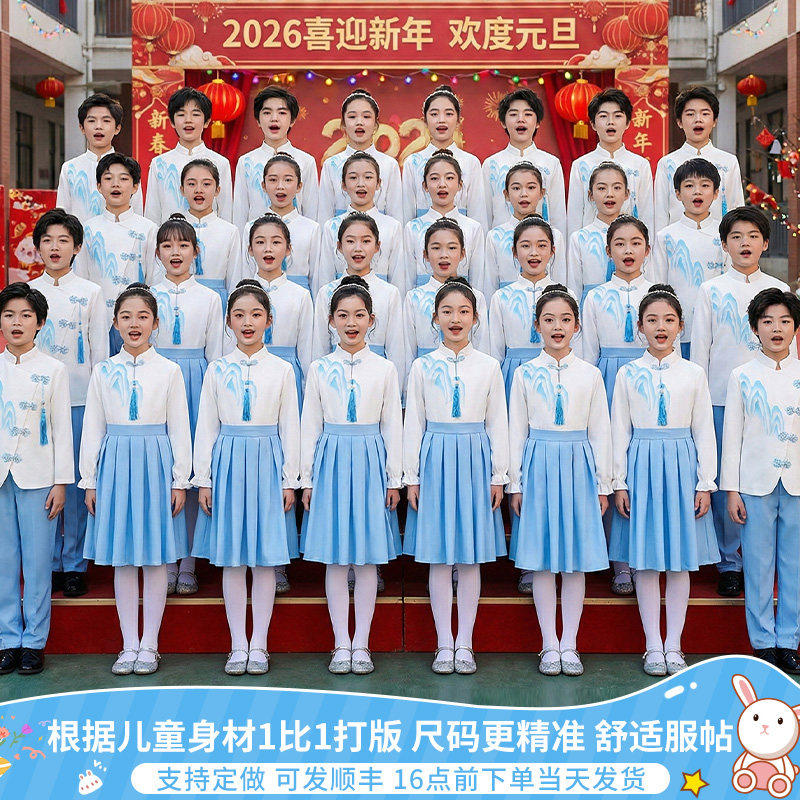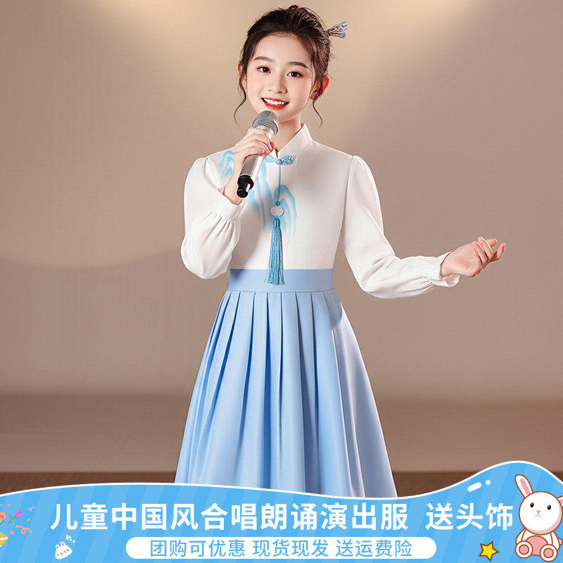 儿童初中小学生女童中国风大合唱团诗歌爱国朗诵演讲比赛演出服装