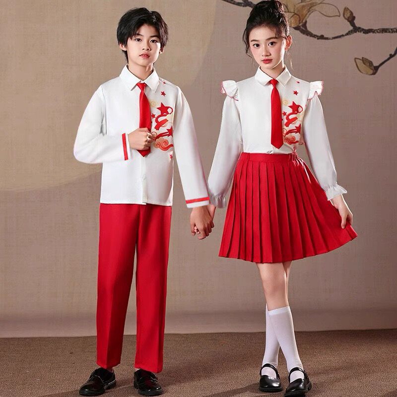 六一儿童合唱朗诵演出服女童中小学生红色爱国诗歌演讲比赛礼服装