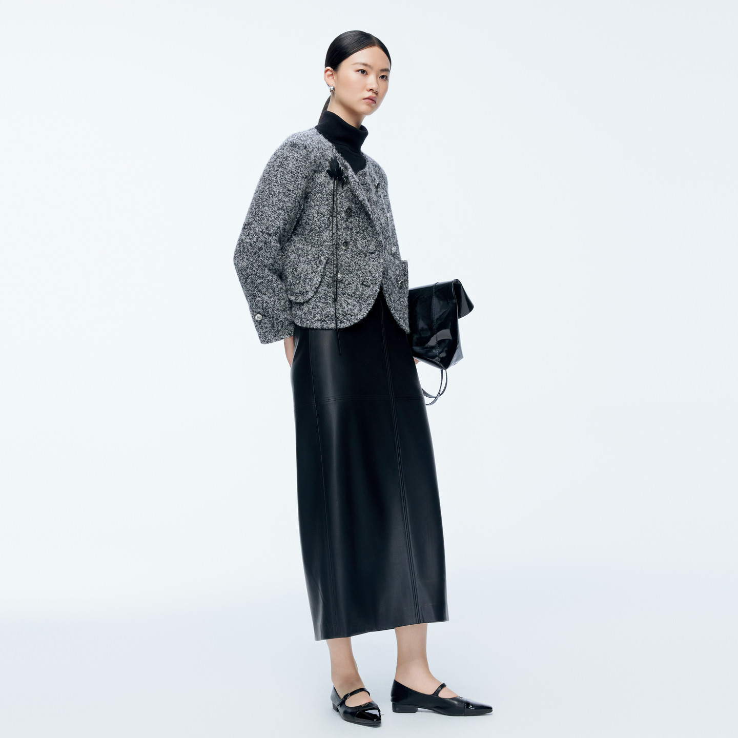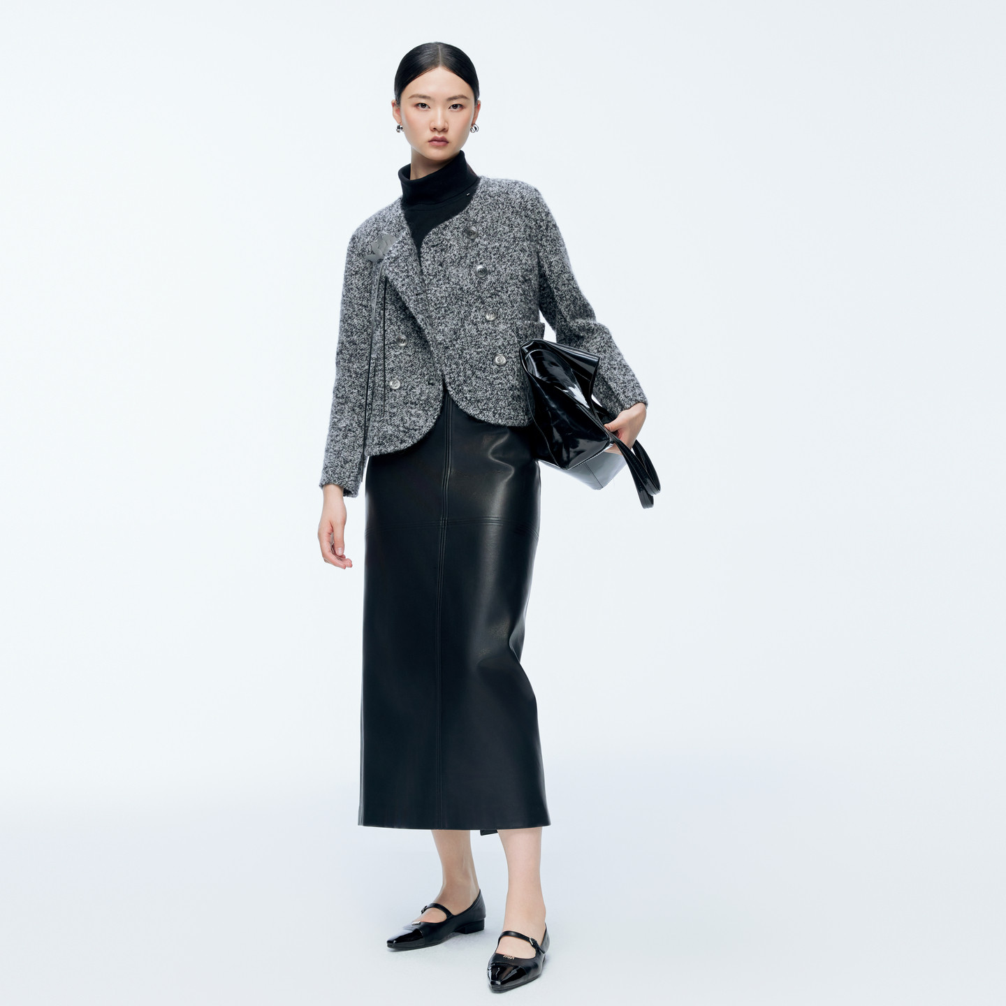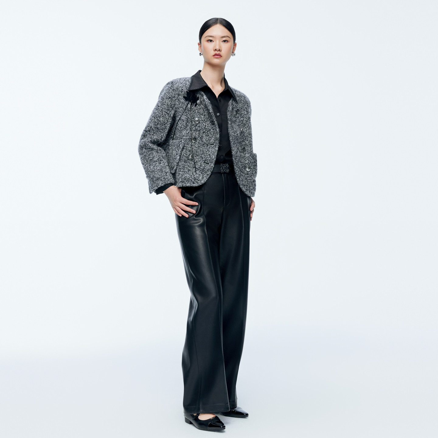婉甸2025年冬季新品杂花灰复古小香风羊驼毛双面呢外套1244E12ZY3