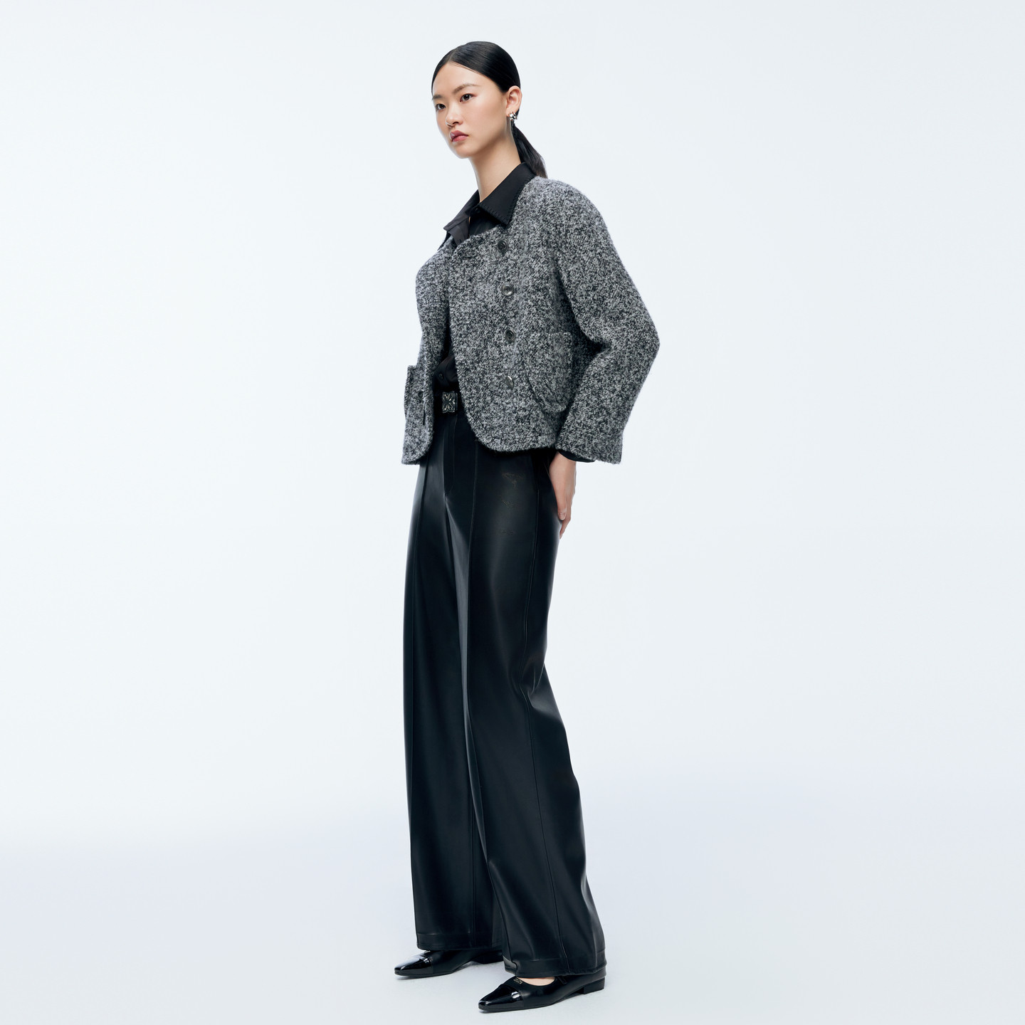 311线报网描述:杂花灰复古小香风羊驼毛双面呢外套