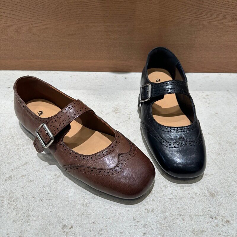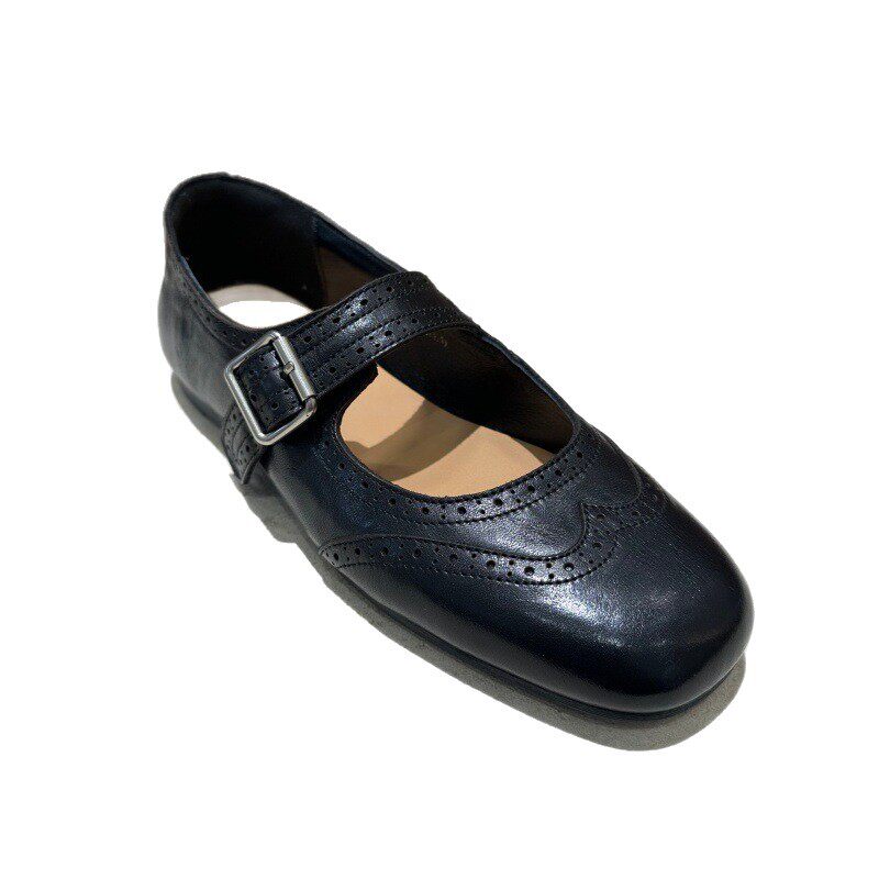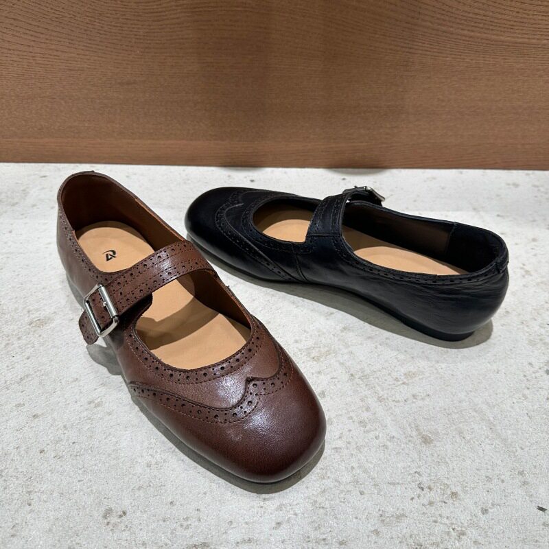 蝶奥雕花玛丽珍平底小皮鞋女鞋2026春款牛皮浅口一字带配裙子单鞋