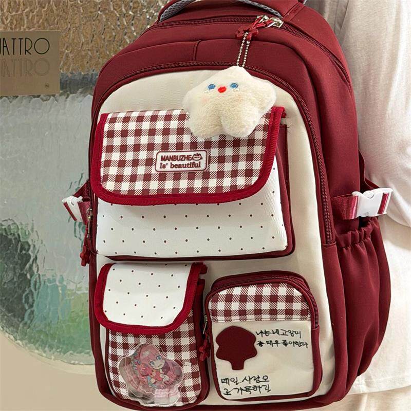 茶话会韩系ins风可爱痛包双肩包 初高中学生书包女大容量上课背包
