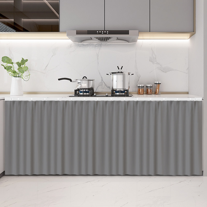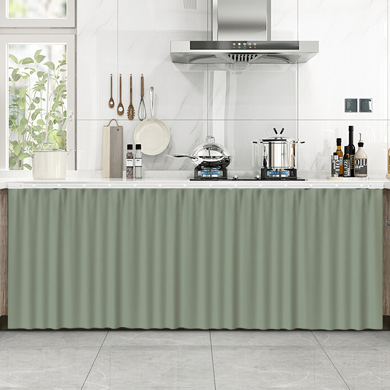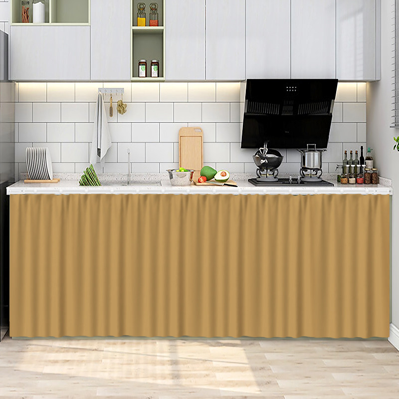 纯色厨房遮挡帘橱柜门帘遮丑杂物防尘布无门柜子布帘子免打孔拉帘