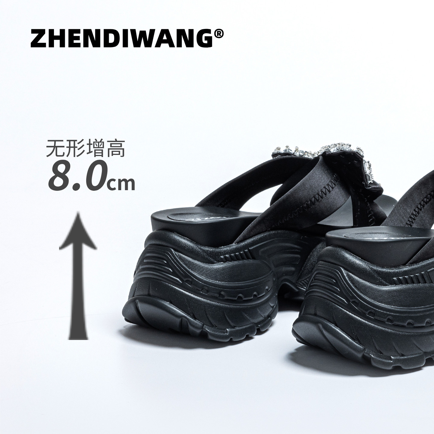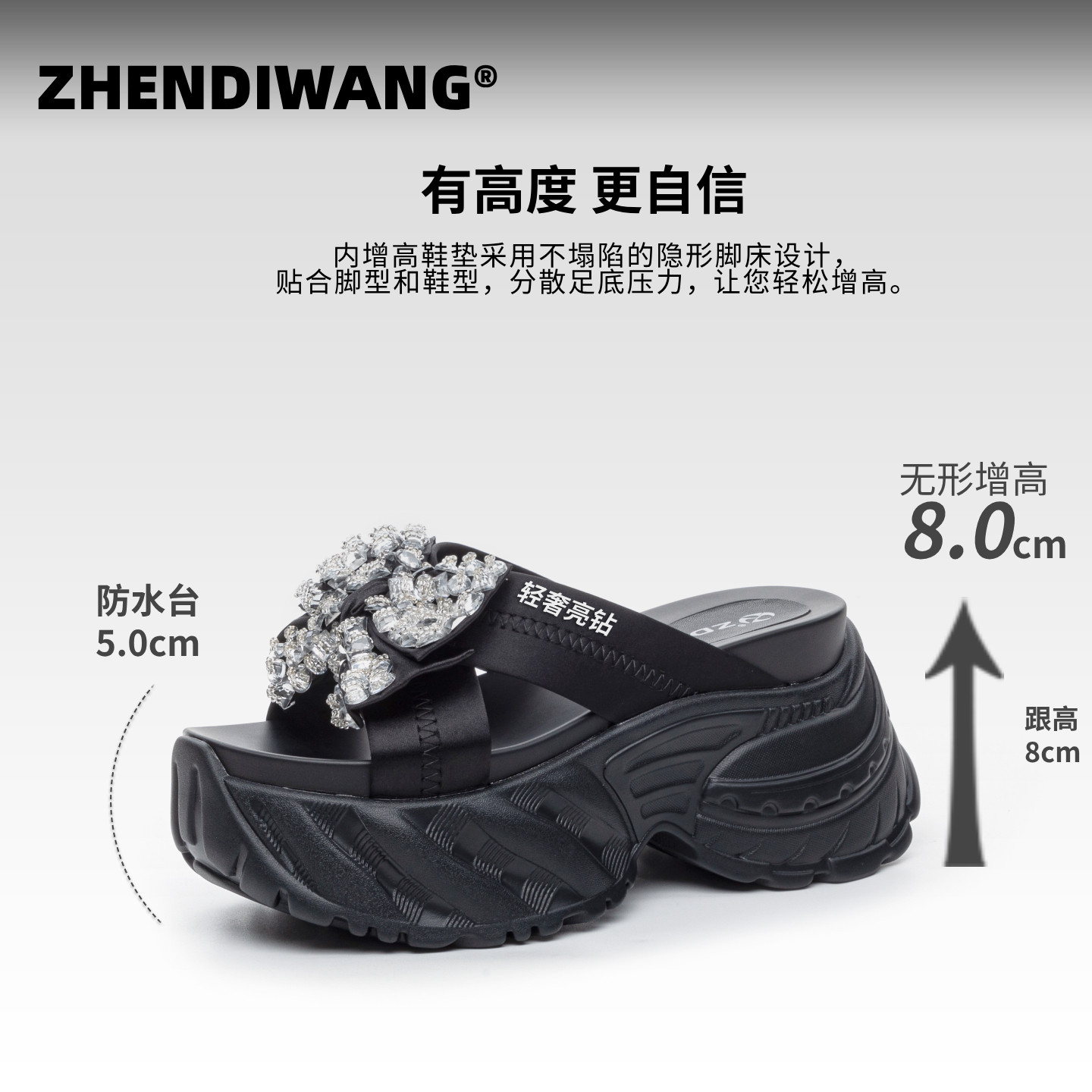 震地王女鞋2025夏季新款休闲小个子厚底8cm透气内增高一字拖凉鞋