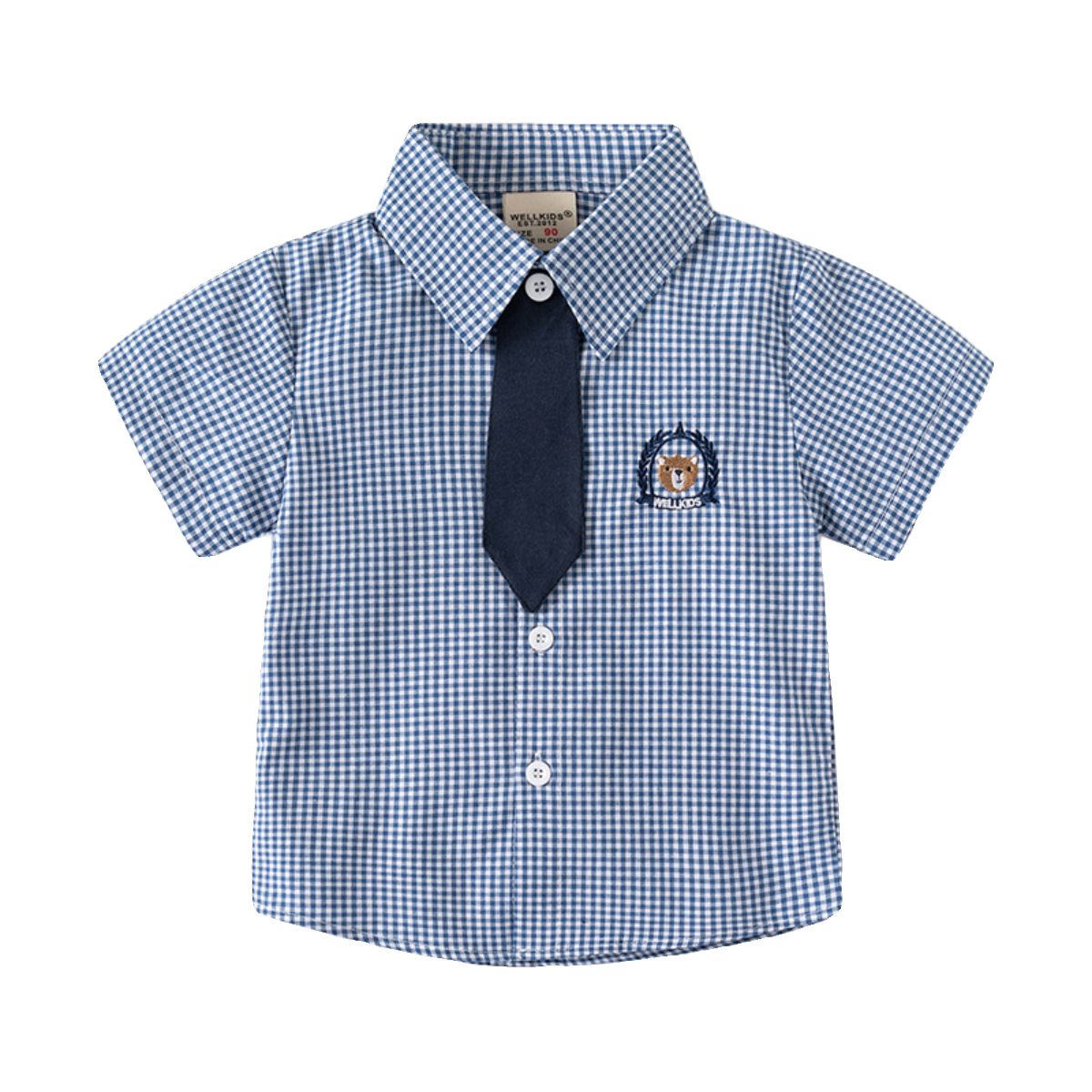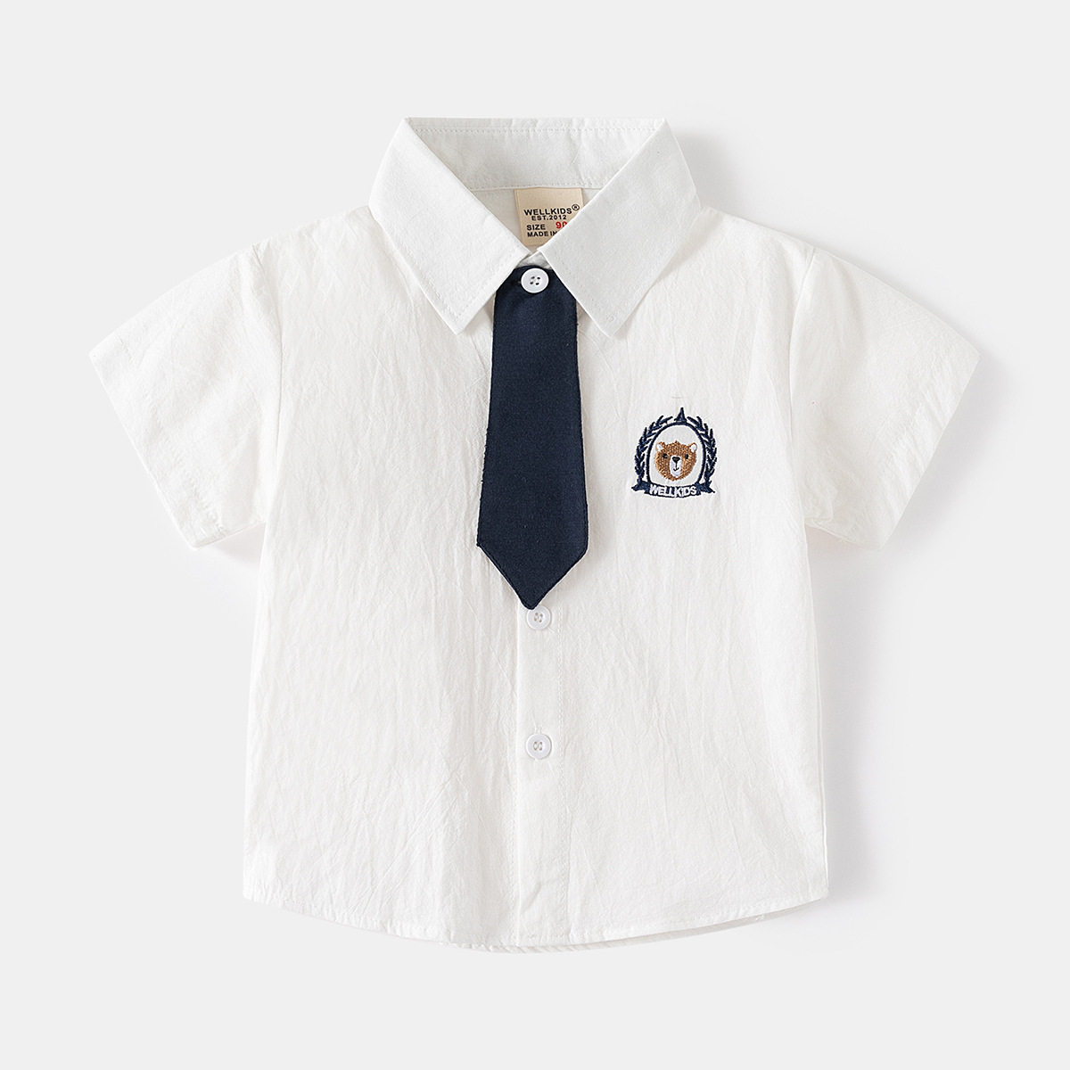男童短袖衬衫纯棉夏季新款童装韩版宝宝洋气领带儿童翻领衬衣薄款