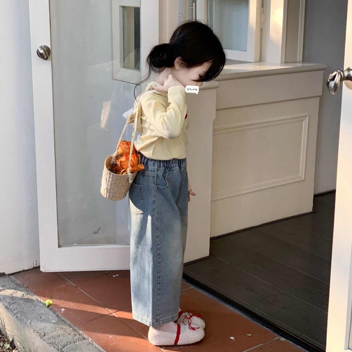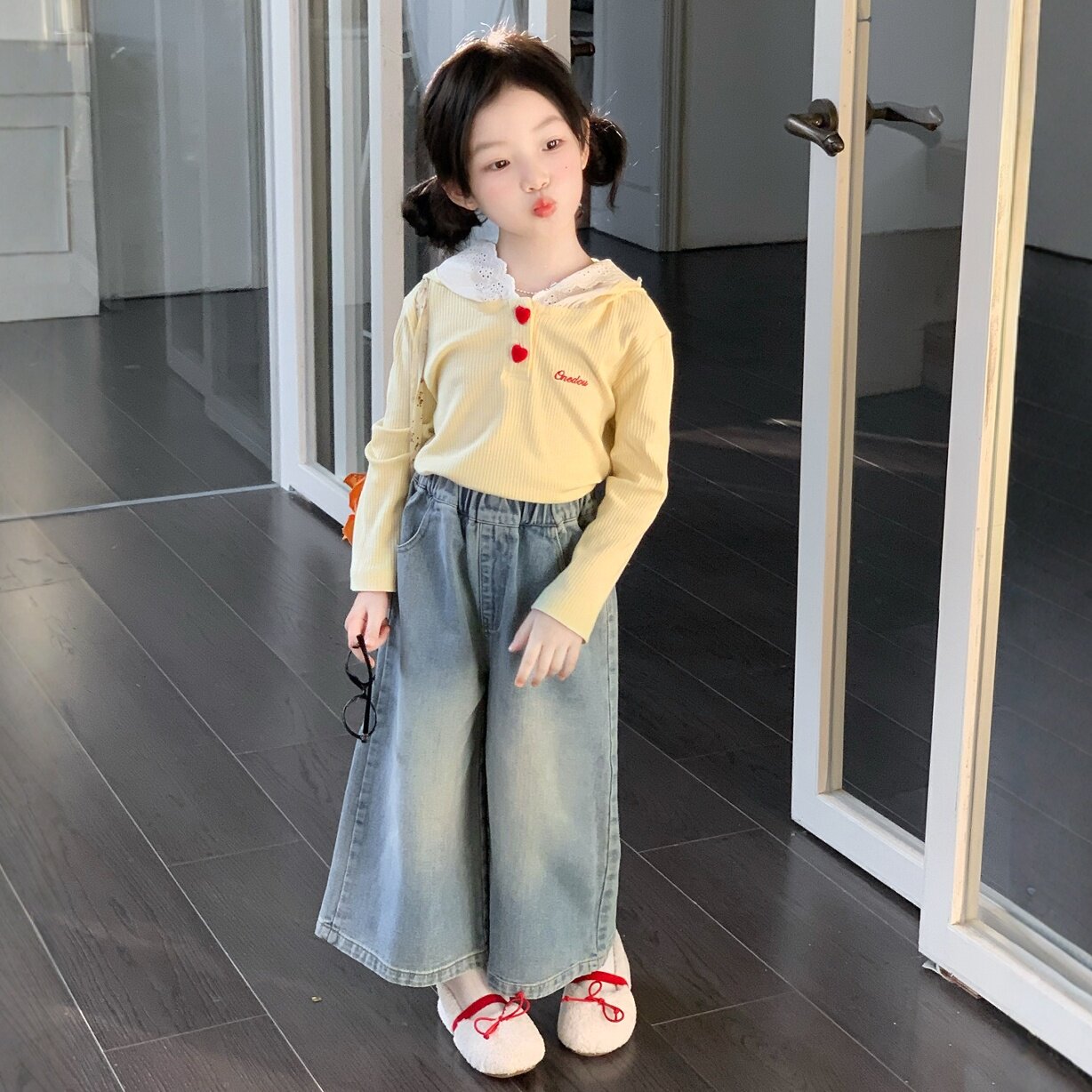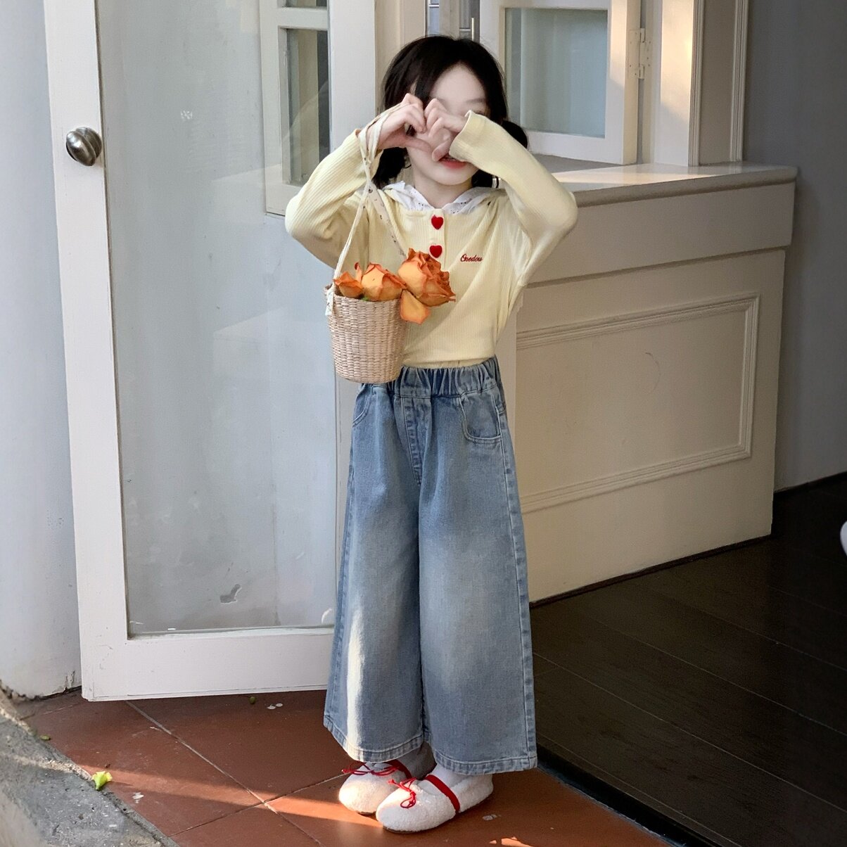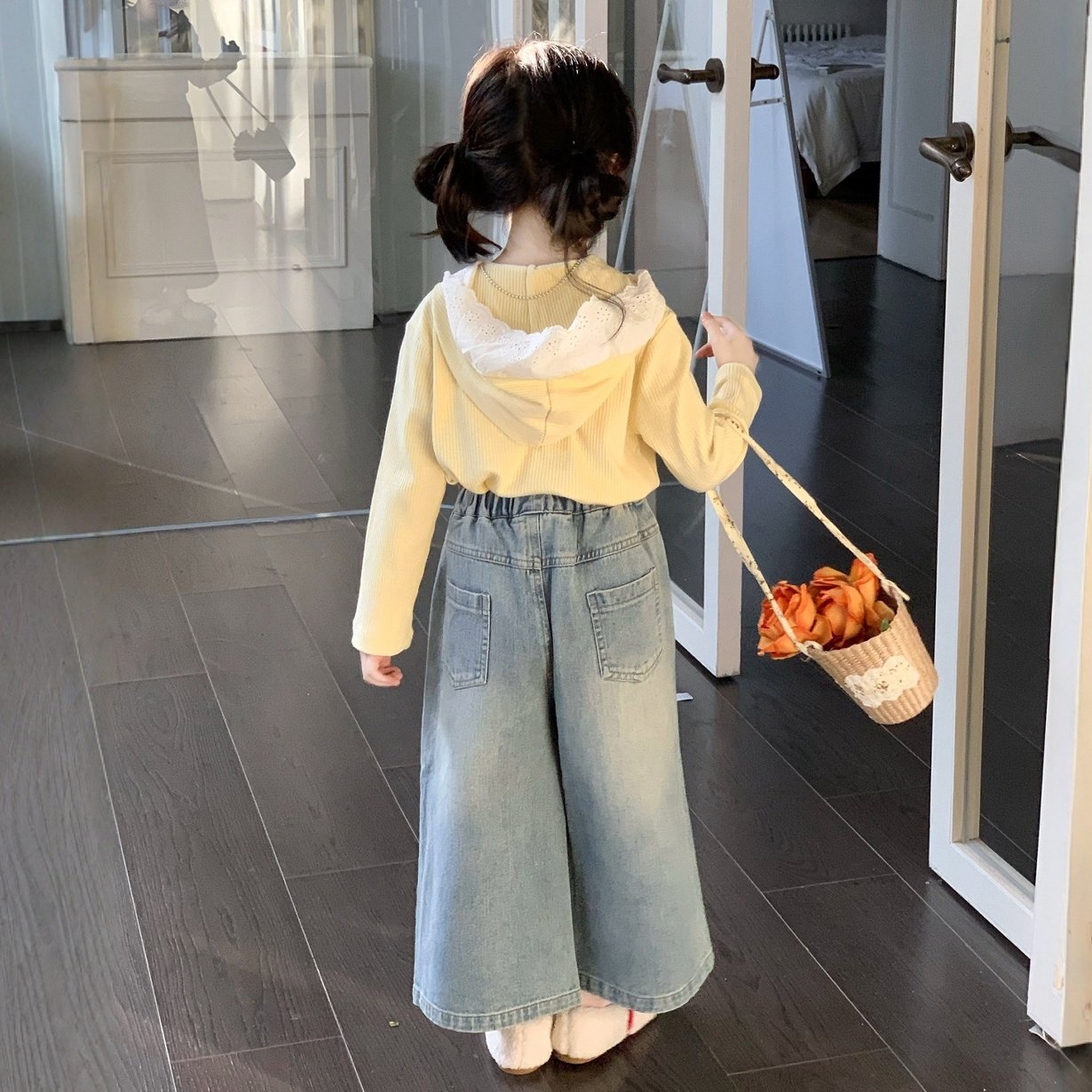 女童2026春装套装新款儿童洋气上衣T恤t小女孩连帽卫衣牛仔阔腿裤