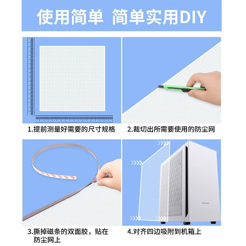 白色机箱PVC防尘网配磁条主机侧板定制机柜防尘网罩多孔径散热快