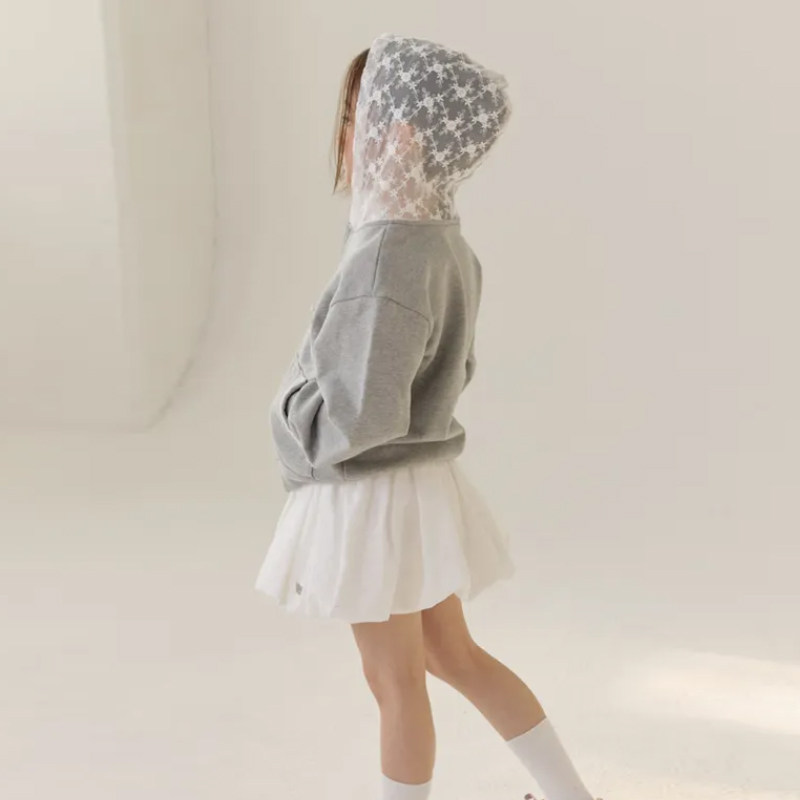 曼卿昔 蕾丝连帽卫衣新款儿童百搭外套外穿可爱女童春秋套头上衣