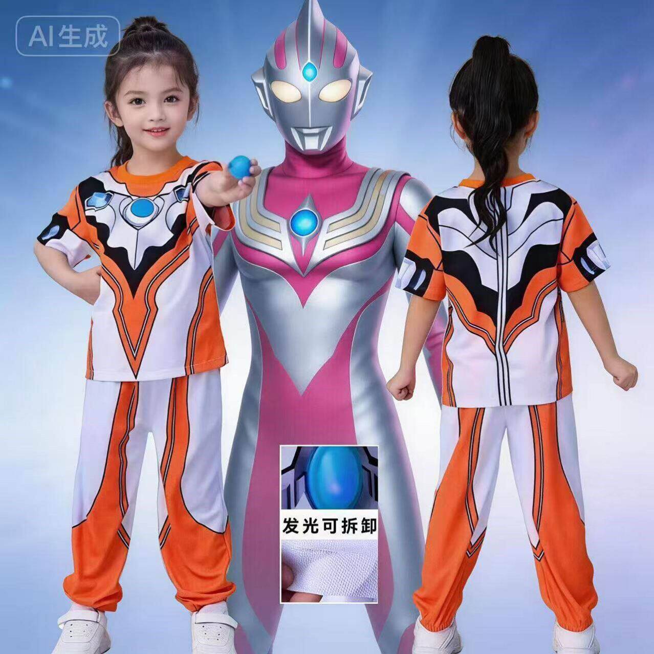 女童格丽乔奥特曼套装纯棉A类3-6-9岁小女孩迪迦赛罗运动长袖长裤