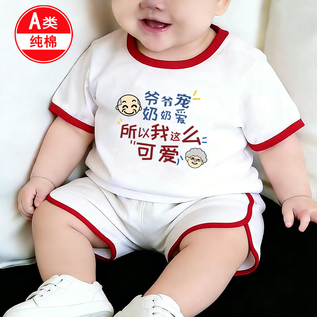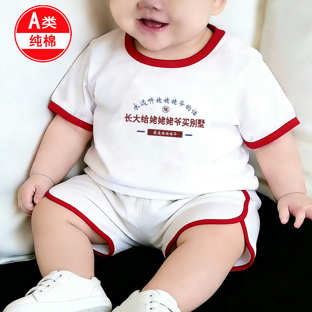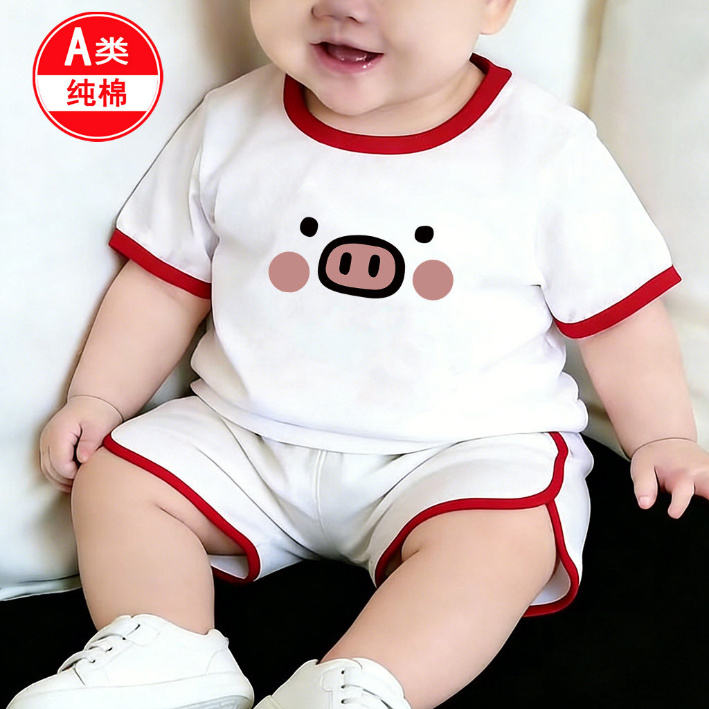 婴儿夏装套装儿童夏季运动男童女童洋气短袖纯棉A类宝宝超萌衣服