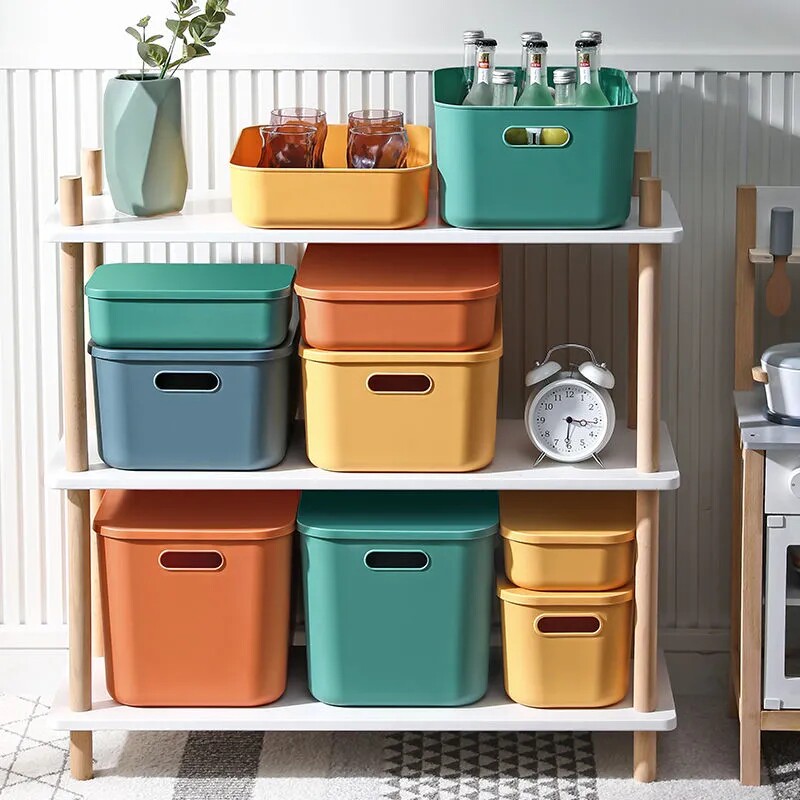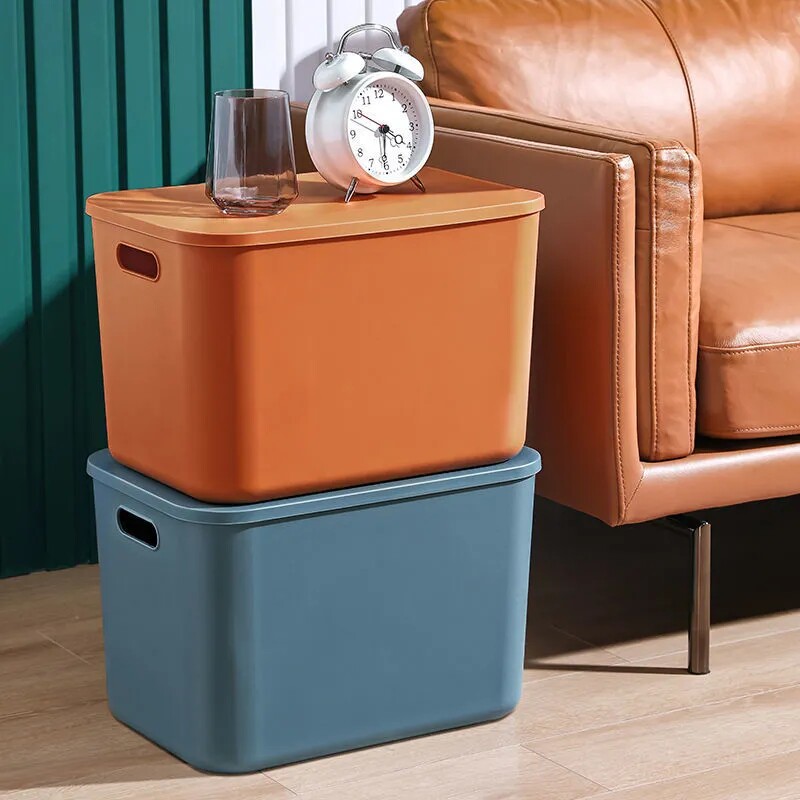 家用杂物收纳箱零食玩具收纳筐衣柜客厅储物盒带盖子塑料整理箱子