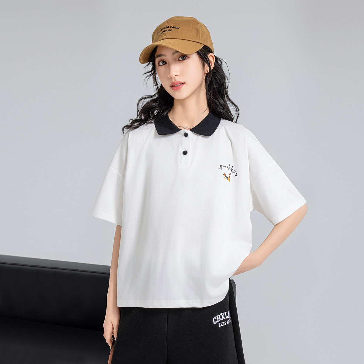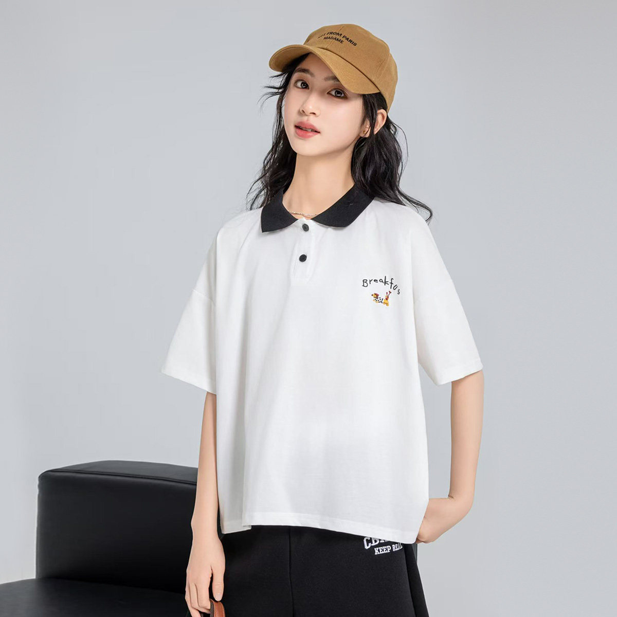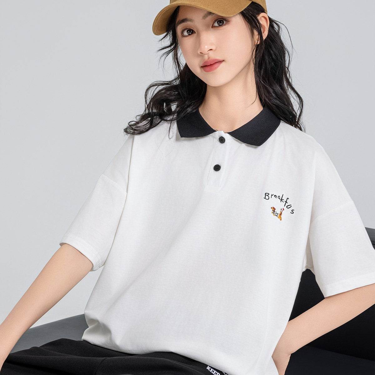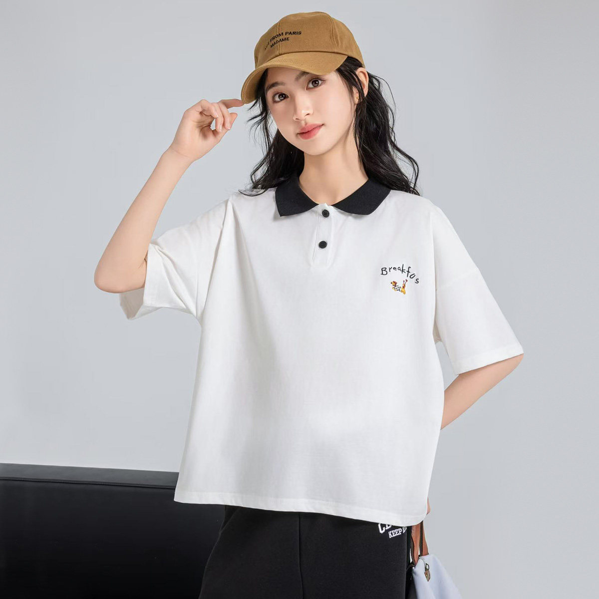古力家女大童夏季翻领短袖T恤宽松学院风青少年polo衫上衣体恤潮