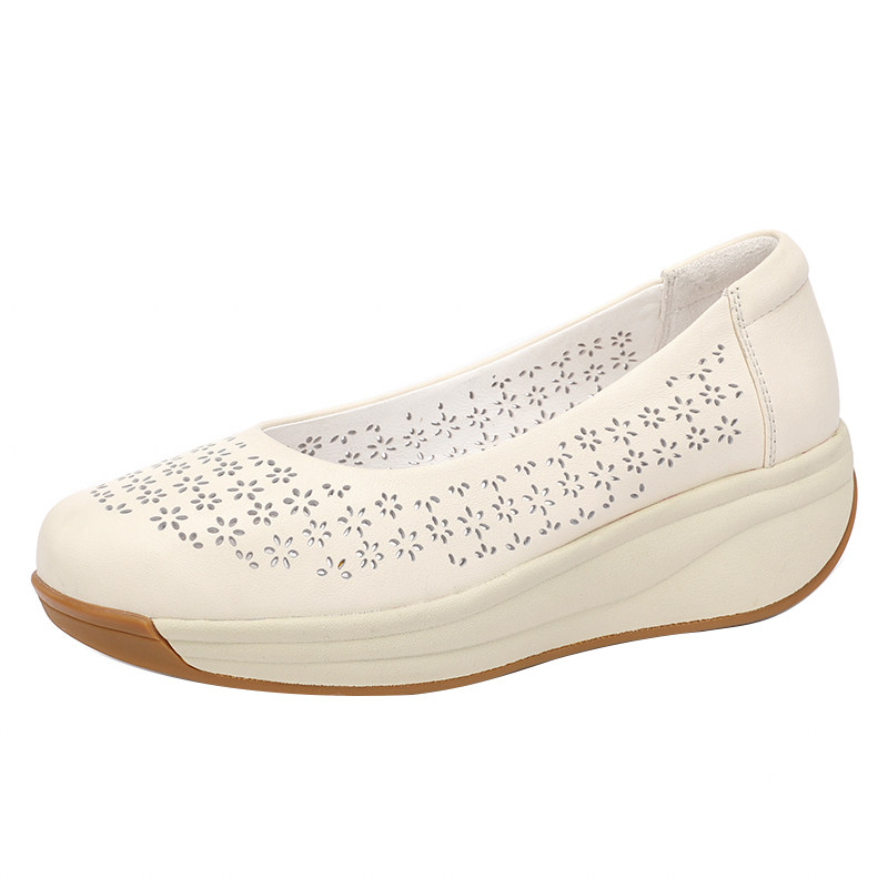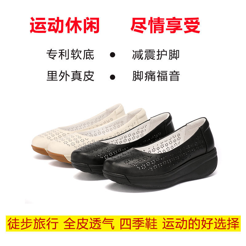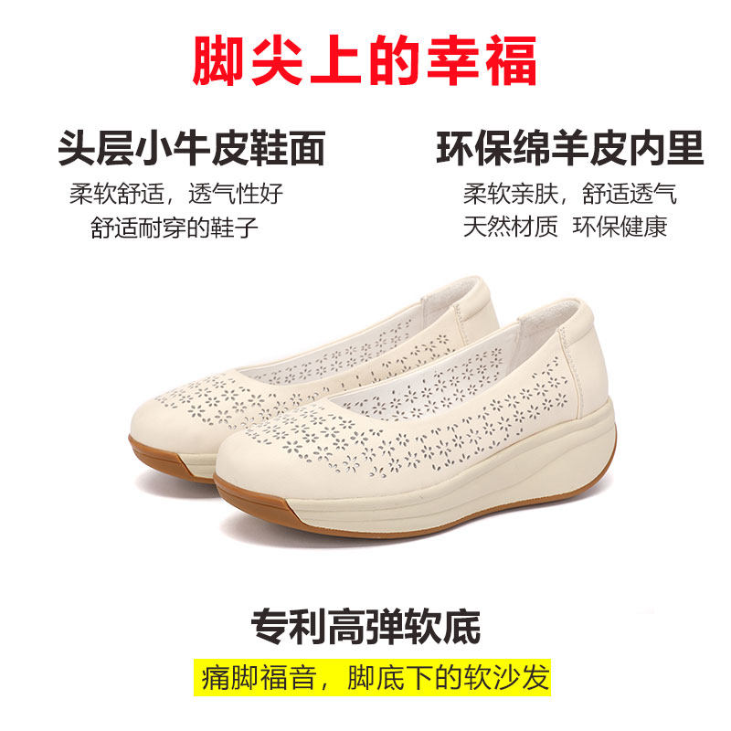 夏天凉鞋女镂空软底软面舒适妈妈鞋真皮羊皮厚底透气洞洞鞋女鞋