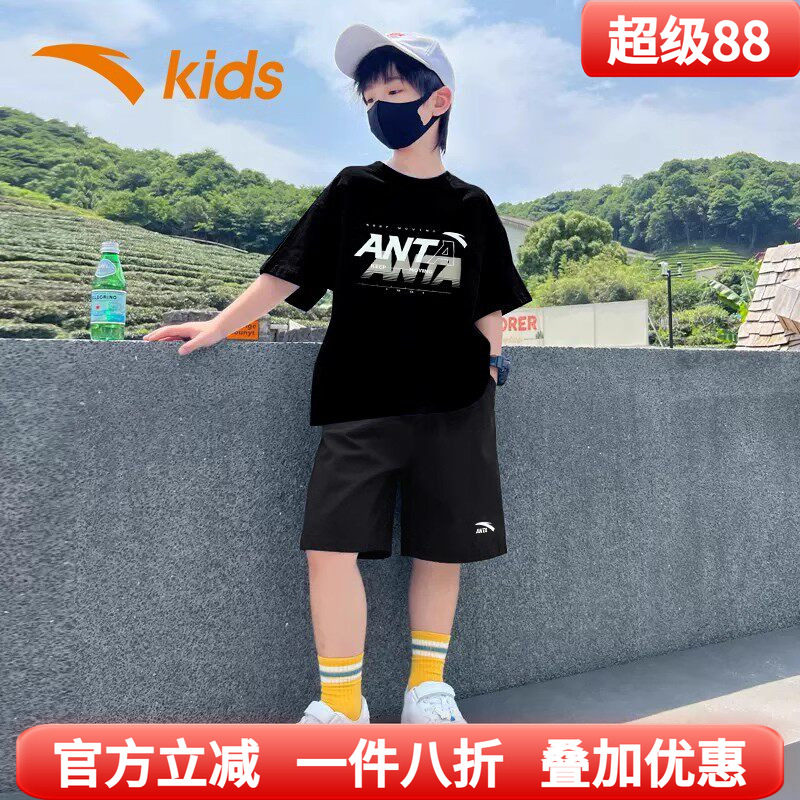 安踏男童短袖运动套装2026新款夏季童装儿童速干冰丝t恤短裤大童