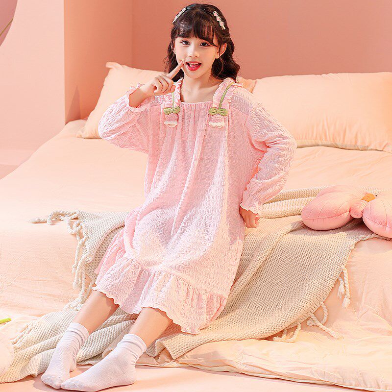 儿童睡裙女童春秋季云朵棉长袖女孩初中生公主风甜美连衣裙家居服
