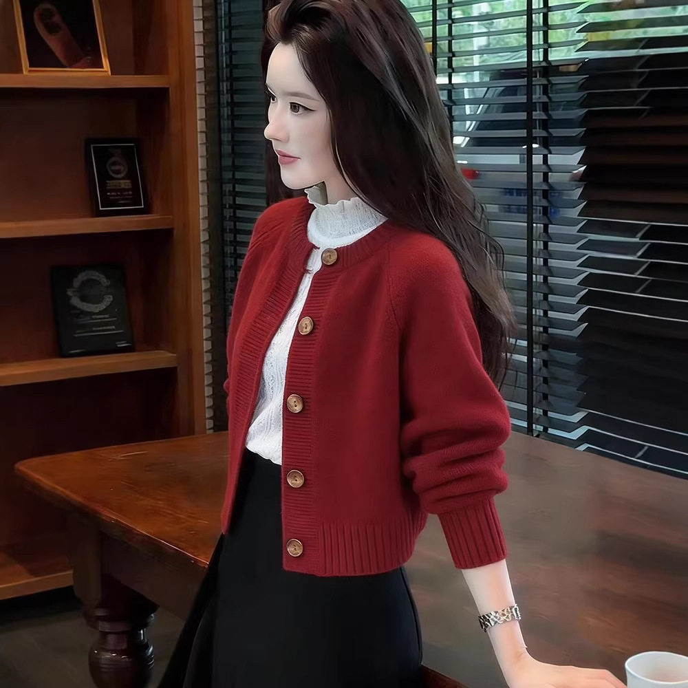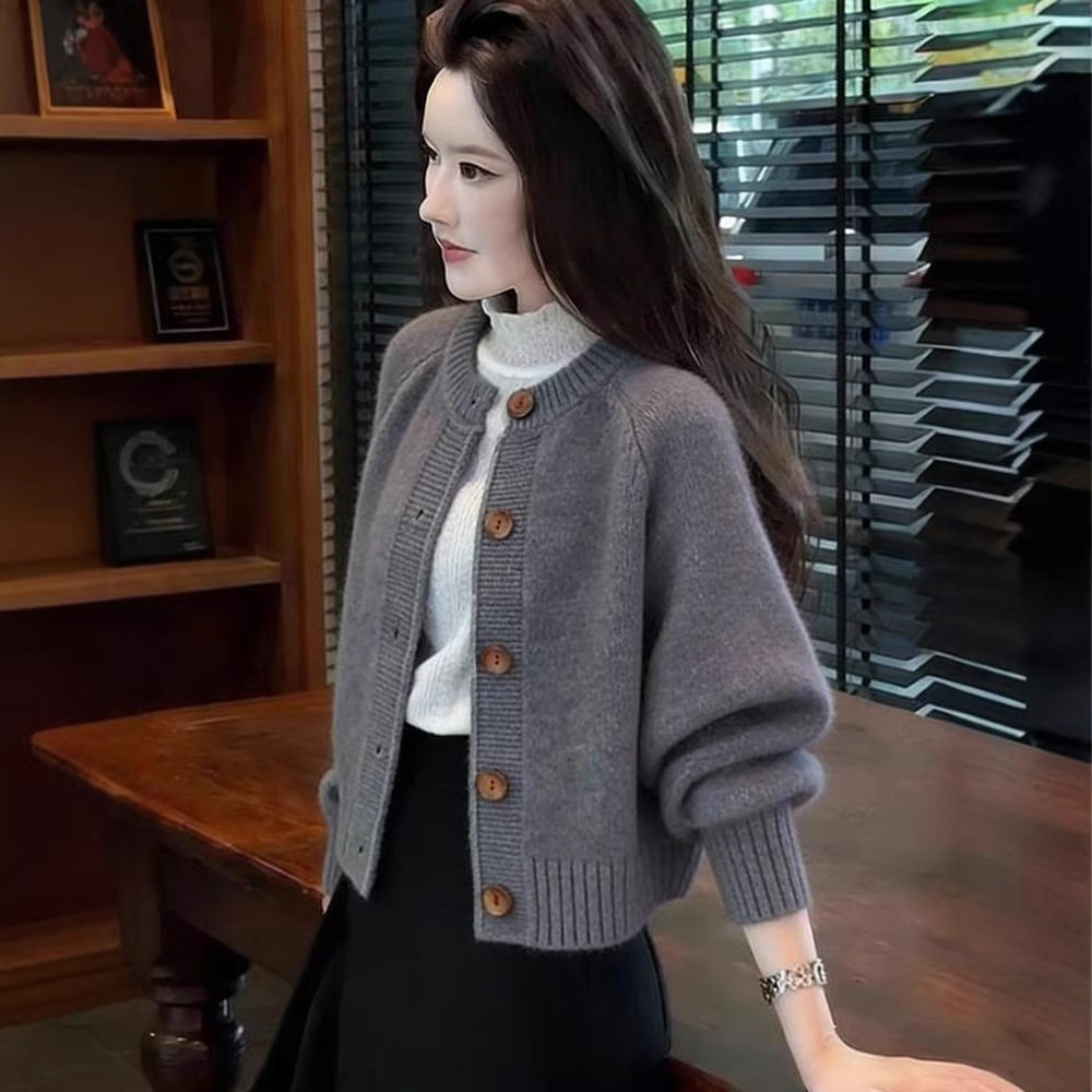 2026年早春新款舒适休闲简约百搭圆领针织衫毛衣外套大码女装上衣