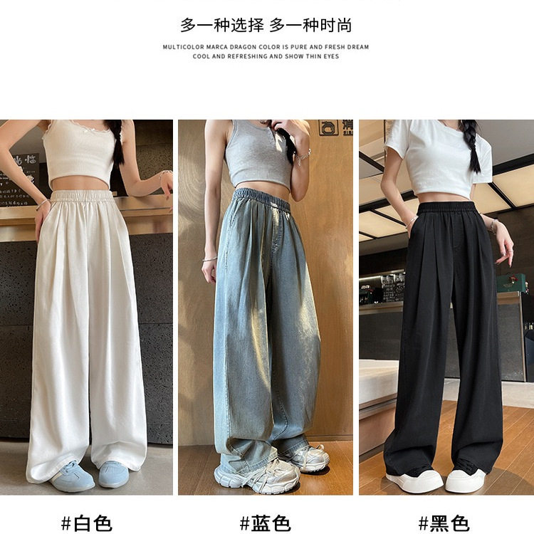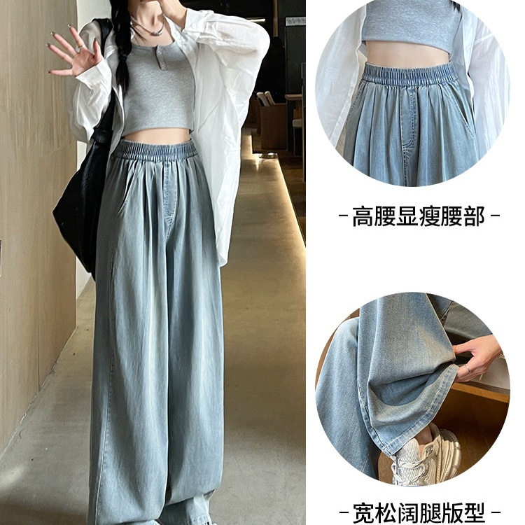 天丝女款夏季薄款牛仔裤2025新款高腰宽松小个子直筒休闲阔腿裤子