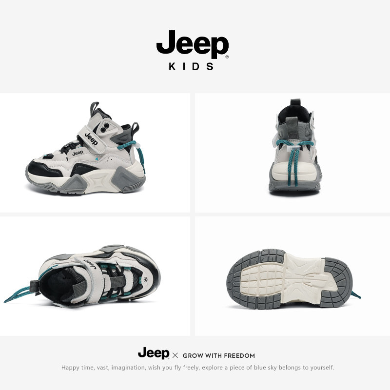 jeep儿童鞋子男童鞋2026新款高帮运动鞋冬季加绒加厚二棉鞋大棉鞋