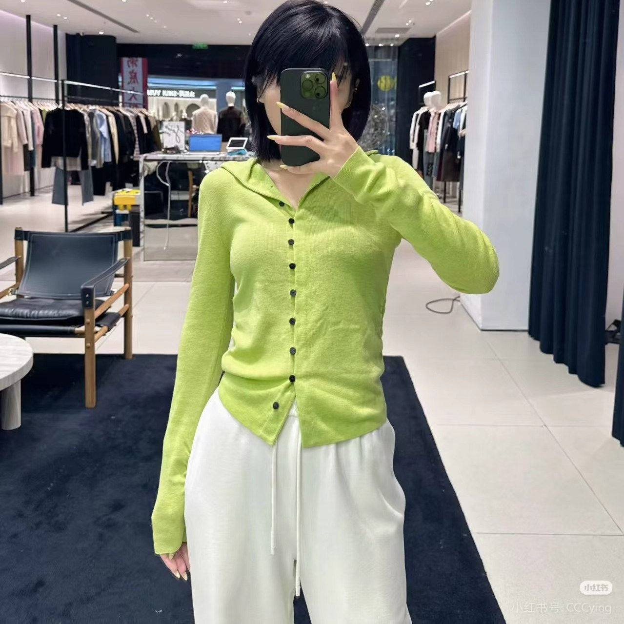 设计师联名MO家正品2025冬新品荧光绿毛衣针织衫开衫MBE4SWT019